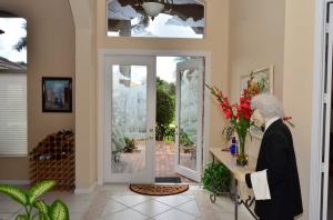 Beautiful-spacious-sprawling lakefront+ pavered screened patio+summer kitchen*Kitchen with granite and stainless steel appliances-huge and overlooks an amazingly large family room*Architecturally stunning*For those that appreciate single-story living,this beautiful home is for you! Very open floor plan with lots of windows+high ceilings*Upon driving up to the home & entering you are greeted by the glass doors & pillared entry. Custom tile(inlay in foyer)in all living areas, expansive ceilings+very open floor plan. The split bedroom plan includes a spacious master suite*Rare extra large master bath with jacussi tub, seperate shower,his & her vanities,step-down shower*Pride of ownership*HOA includes:Multi-milllion $ guard gated entry*fitness center*resort-style pool*tennis*internet*premium T
