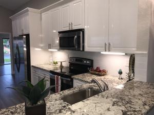 SHOWS LIKE A MODEL!! Completely renovated 4 bed 2 bath home (biggest model in community). Open floor plan, water views from living and master! Split bedroom plan, great room, breakfast room, pass through bar from kitchen. Private and secluded corner lot on lake. Laminate wood floors, granite counters, subway tile, new roof, new stainless appliances, walk-in closet, & mud room. Front and rear patios, extensive new landscape.