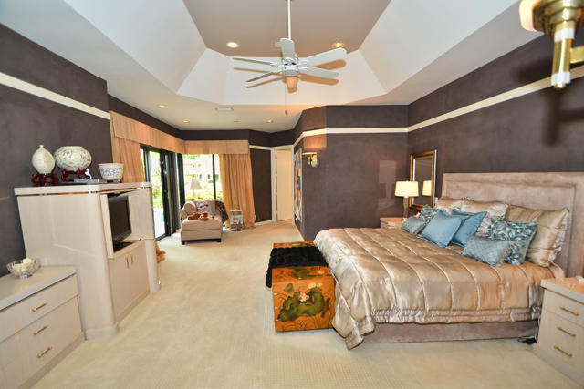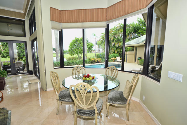 Beautiful, decorator-designed Contemporary one-story estate home offers long & lovely lake & golf views, IMPACT GLASS, high-end finishes, marble floors, split-bedroom floor plan, phantom screens, sun shades, French doors, and more. A spacious great room with living room, bar, and dining room areas is enhanced by high ceilings and lots of windows that showcase the expansive lake & golf views. The chef's kitchen (Thermador GAS stove & double oven, Bosch dishwasher, trash compactor & granite countertops) opens to the family room and breakfast area. The large master suite has a sitting area, his & her bathrooms, & generous walk-in closets. A guest wing includes 3 en-suite bedrooms. Outside, a screened-in lanai with Summer kitchen, open patio areas, a large pool, and long lake & golf views.