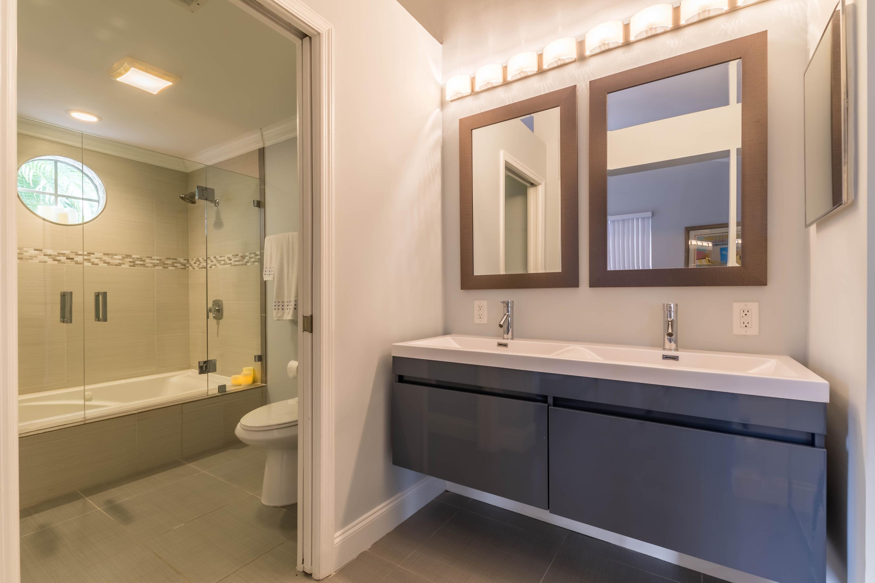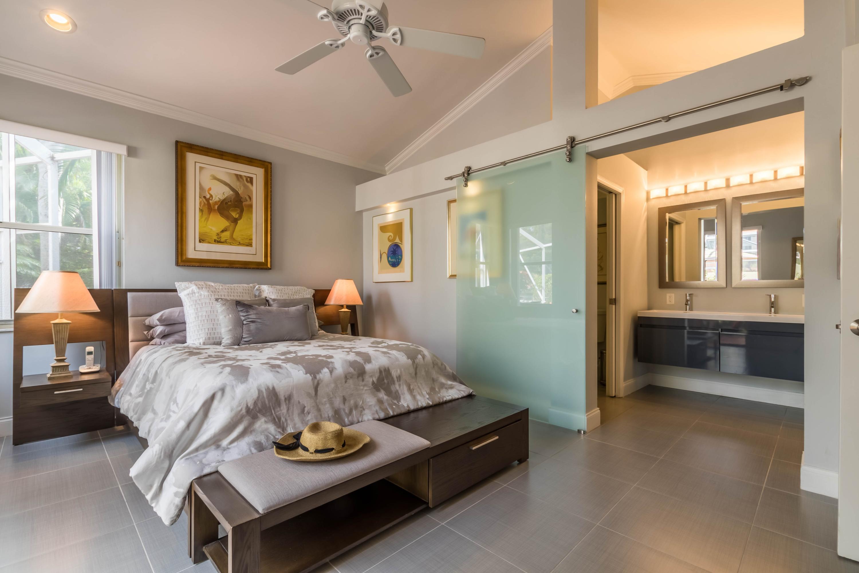 STUNNING RENOVATED HOME - UPGRADED TO THE 11'S - PROFESSIONALLY DESIGNED TO MEET YOUR FUSSIEST CLIENTS - COMPLETELY RENOVATED 2 YEARS NEW - KITCHEN FEATURES ALL NEWER CABINETS, SOFT CLOSE DRAWERS, GRANITE COUNTERS, NEWER STAINLESS APPLIANCES INCLUDING FRENCH DOOR REFRIGERATOR, 156 BOTTLE WINE FRIDGE, BREAKFAST BAR, NEW WASHER/DRYER, NEW CROWN MOLDING THROUGHOUT AND BASE MOLDINGS AS WELL, OPAQUE SLIDING GLASS BARN DOOR SEPARATES MASTER BATH SUITE WHICH FEATURES SPA TUB AND DUAL SHOWER HEADS, DUAL SINKS, POCKET DOOR FOR PRIVACY, WALK IN CLOSET CABINETRY, NEW 20x20 TILE FLOORS, FRESH PAINT, ENTIRE HOME IS HURRICANE PROTECTED, NEW VERTICALS, SCREEN ENCLOSURE SURROUNDS YOUR COMFORTABLE OUTDOOR HEATED SPA, NEW LANDSCAPING, AT&T DIGITAL LIFE HOME SECURITY SYSTEM.
