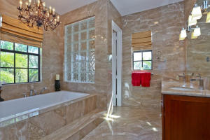 This 4 bedroom, 4.5 bath Mediterranean home was constructed in 2007 & located one house from the Intracoastal Waterway in the desirable ''South of Southern'' neighborhood in West Palm Beach. The home offers exceptional craftsmanship & design w/ every upgrade imaginable. Downstairs has travertine floors, 22' entry foyer, 10' ceilings, gourmet chef's kitchen w/ Viking Appliances, formal dining room & a 41'x 19' living room w/ a luxurious wet bar & French doors opening to a gas heated pool & two separate covered patios with gas lanterns. The upstairs contains 4 bedrooms & baths, two balconies, Brazilian cherry floors & an exquisite master bath with multiple shower heads. The outdoor area is lushly landscaped & has views of the ICW. The home is protected by impact window & doors throughout.