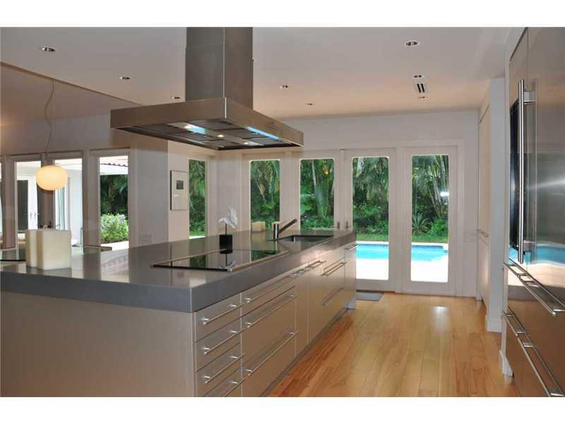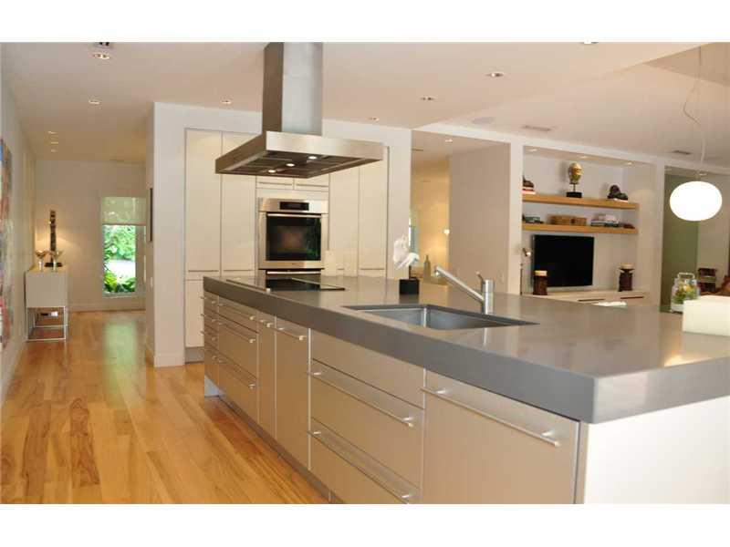 Slate steps into foyer, contemporary living room, hardwood floors throughout, custom kitchen, center isle KWC faucet-Gaggenau hood, stone counters, soft close cabinetry, Miele appliances-custom sub-zero. French doors to outside living area with 8'deep hea ted pool-lush landscaping. Master suite with tons of storage. master bath w seamless shower, slate floor, walls, huge soaking tub-all commodes Toto. Surround sound individually wired to every room & outside. 2 car secure garage w closet cabinets & attic.