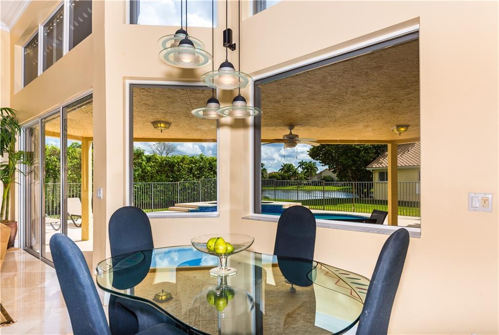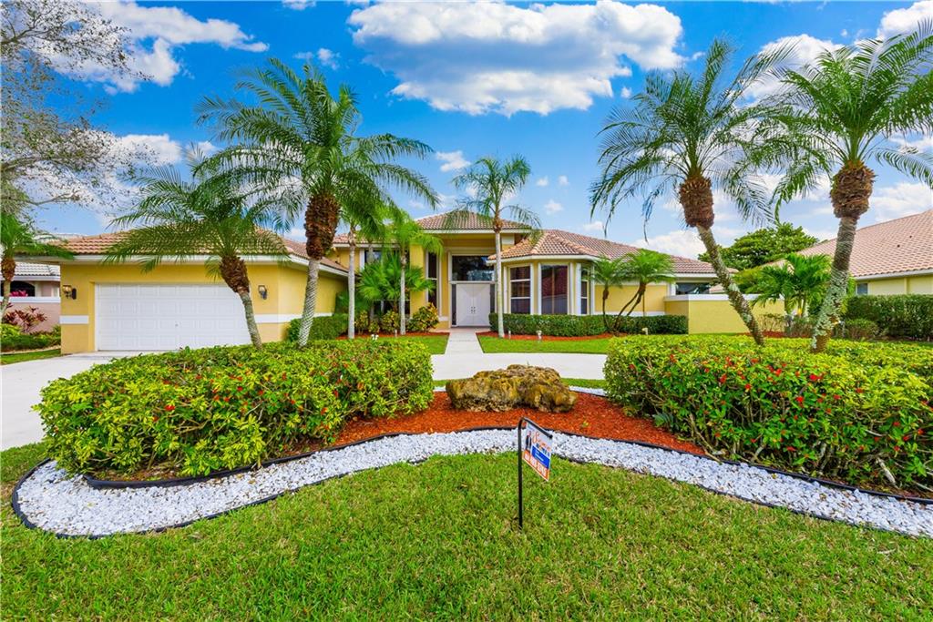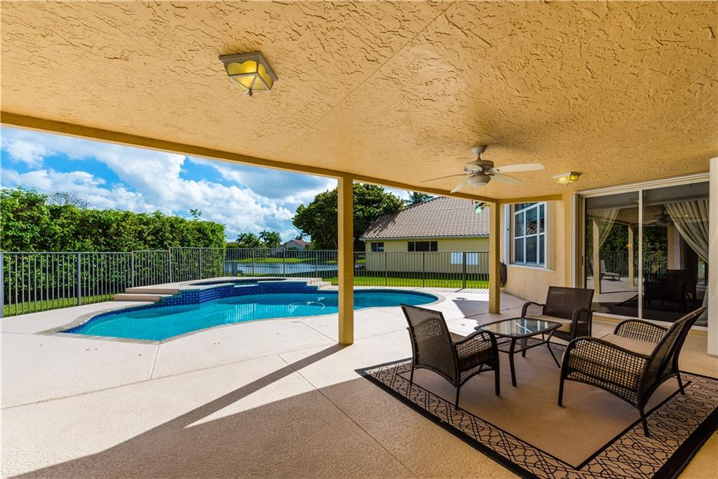 Palm Island Pool Home Stunner! Remodeled elegance with a floor plan that offers tons of room for family gatherings. Updates include: Newer roof, 24x24 Marble Floors, Two newer ac's, Water Heater, Pool Motor, Accordion Hurricane shutters, & Kitchen appliances. Kitchen has all the bells and whistles with relaxing views of pool/lake. Spacious secondary bedrooms. Large Master. Patio & Heated Pool are the perfect setting for family gatherings. Circular driveway. Guard Gated with playground. Excellent schools.