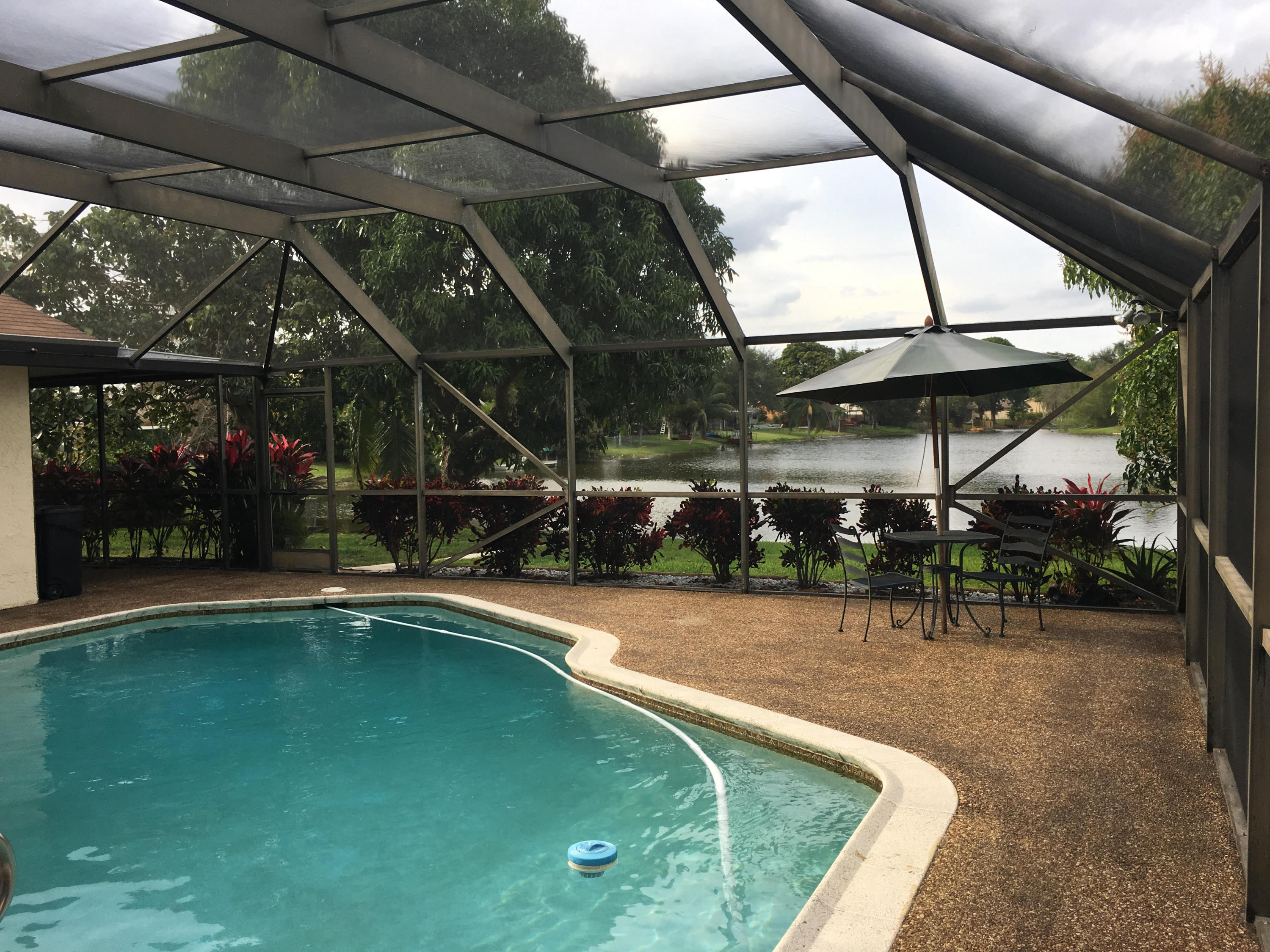 This beautiful home features 4 bedrooms, 2 bathrooms, with a screened-in pool and patio with gorgeous sunset lake views. Located on a scenic lakeside with numerous fruit trees on the property. Great for families in an ''A'' rated school district. BocaRaton community offers swimming pool, basketball courts, jog path, tennis, and playground. Only minutes from a public golf courses, restaurants, shopping plazas, places of worship, and the Florida Turnpike.