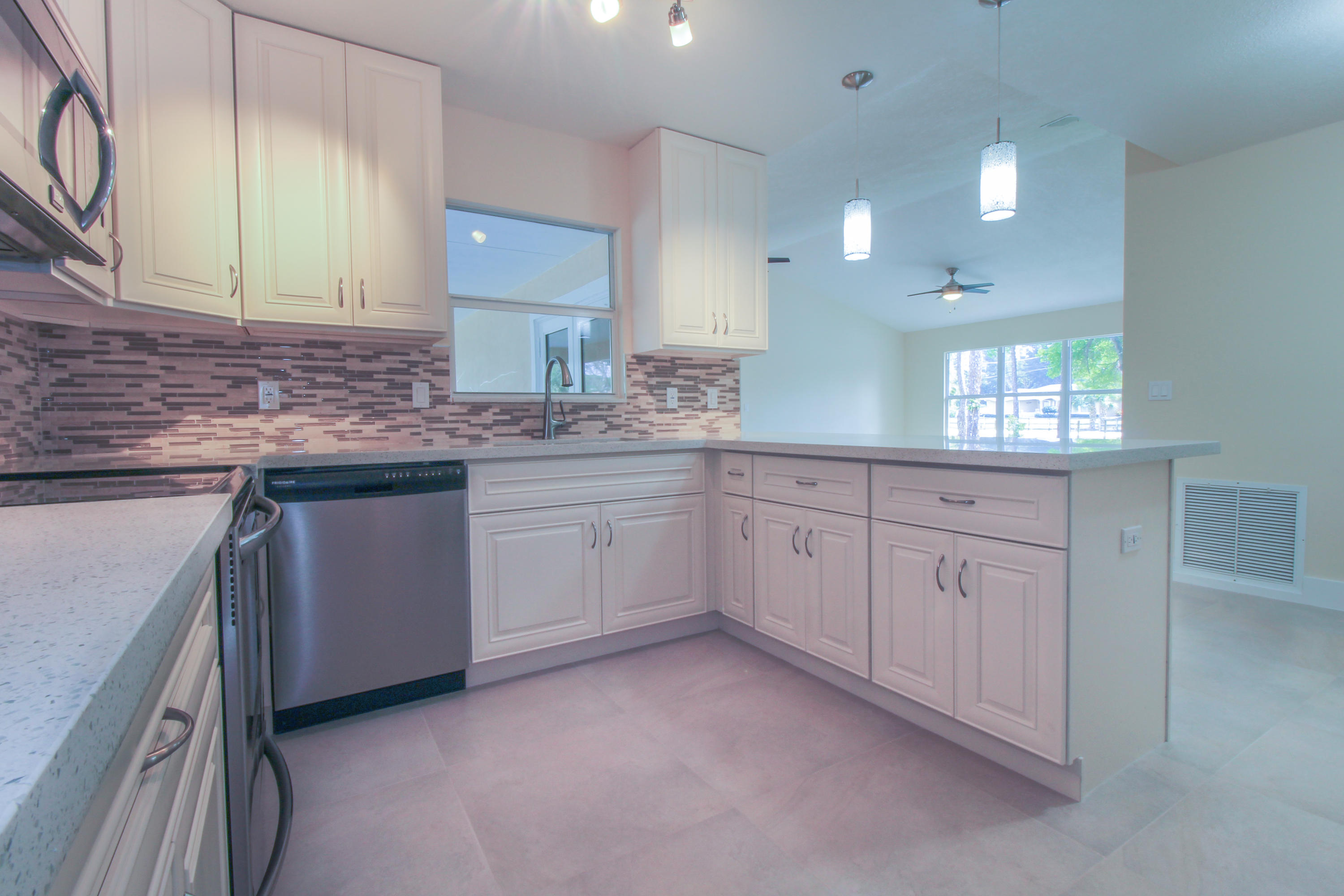 Do you lack the ''handyman gene''? Absolutely hate renovations? Well, GOOD NEWS!! Just bring your tooth brush as this home is MOVE-IN ready! This vibrant 3/2 single-family home with a 2-car garage is ready to help you and/or your family make new memories. This opulent home boasts ALL NEW EVERYTHING! The exterior has been refreshed with new stucco, paint, pavers, high-design landscaping, and new impact-resistant hurricane windows. Upon entering the home, a wide-open space greets its guest with vaulted ceilings and beautiful tile laid throughout the home. Gorgeous white high-end kitchen cabinets accented with sparkling white quartz counter tops, equipped with all stainless steel appliances, call to all its guest who enter the home. Continue reading for the best part......