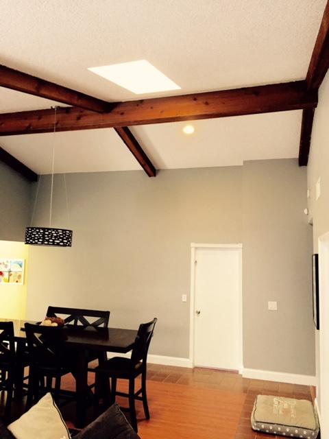 Open, bright, spacious, and turn key, this 3/2 is in the heart of central Boca Raton. Vaulted, beamed ceilings, sky lights and floor to ceiling openings in all rooms. Clean, open and bright, featuring updated bathrooms and kitchen, a two car garage, large outdoor terraced space, and just 200' to the community pool. Best rated A+school zone Brand new impact garage door in 2013. Custom closets.