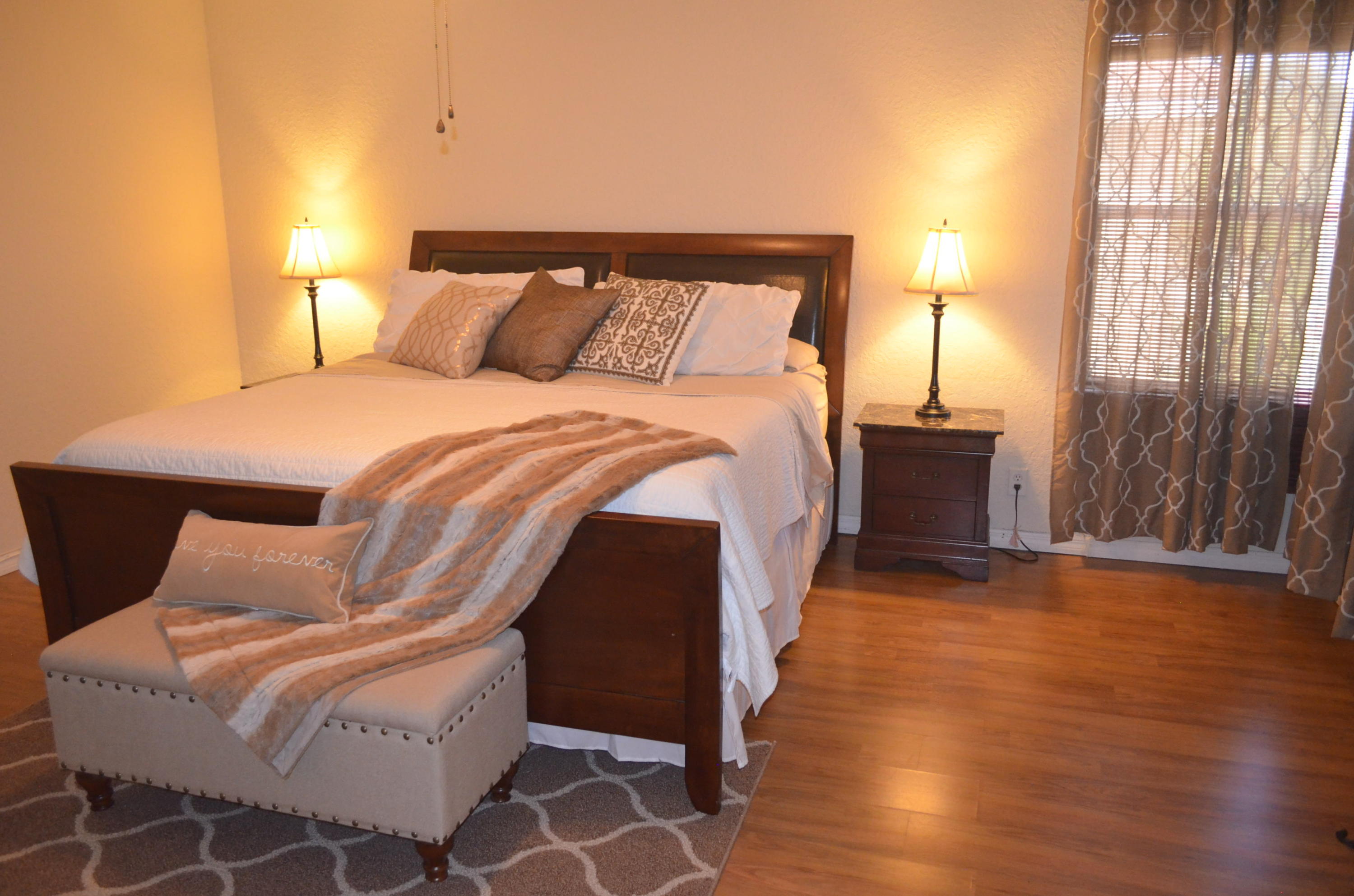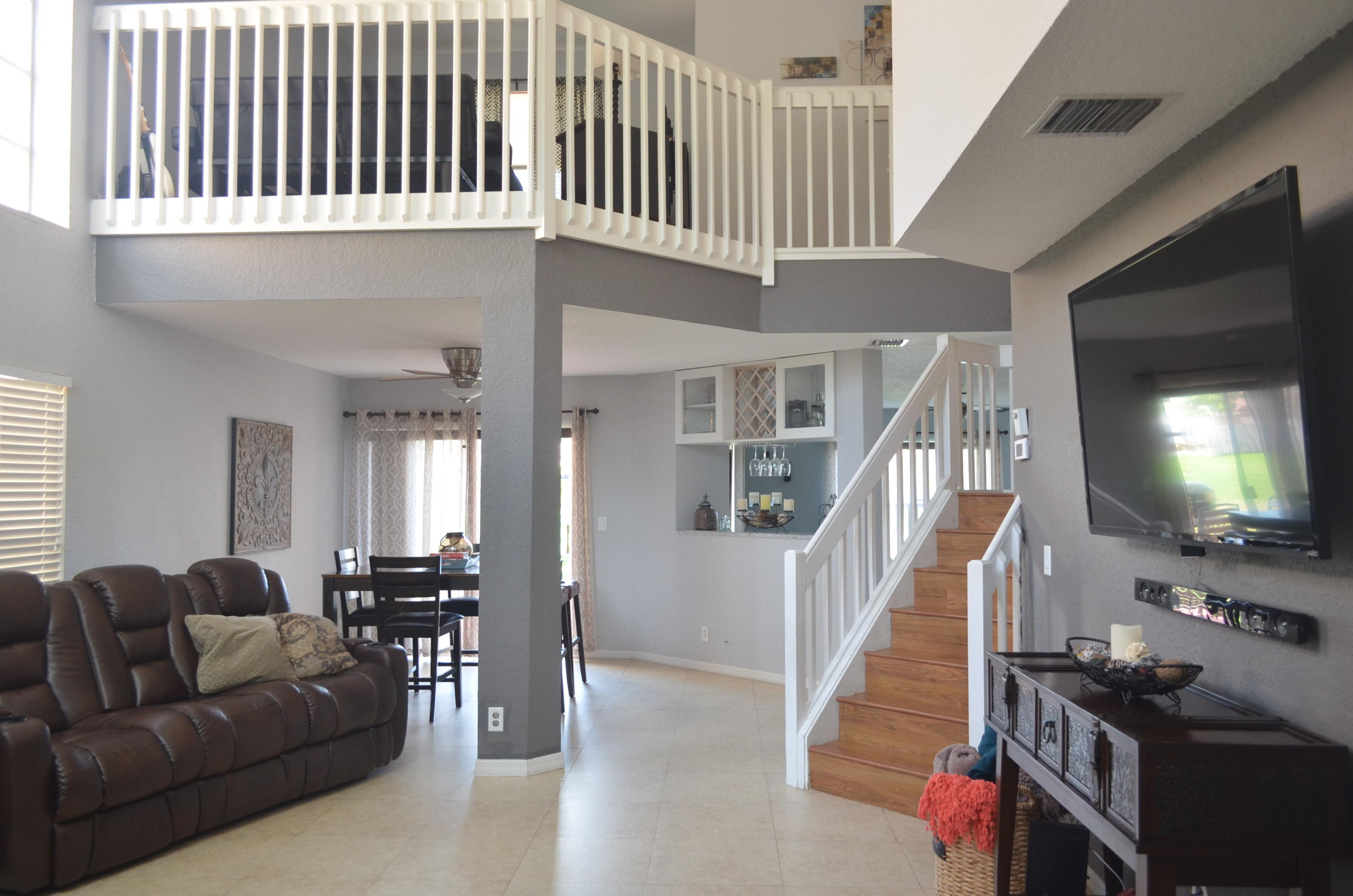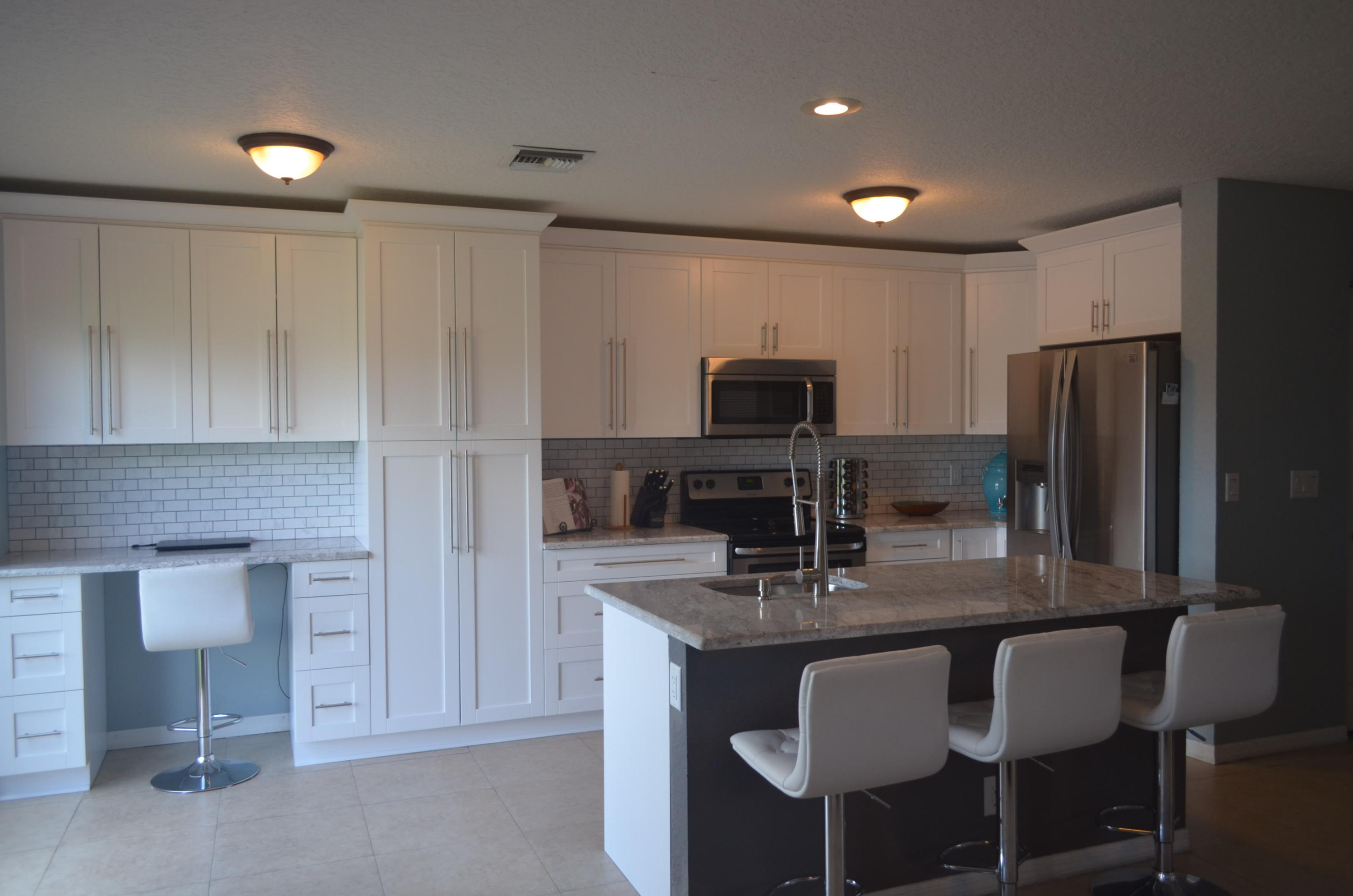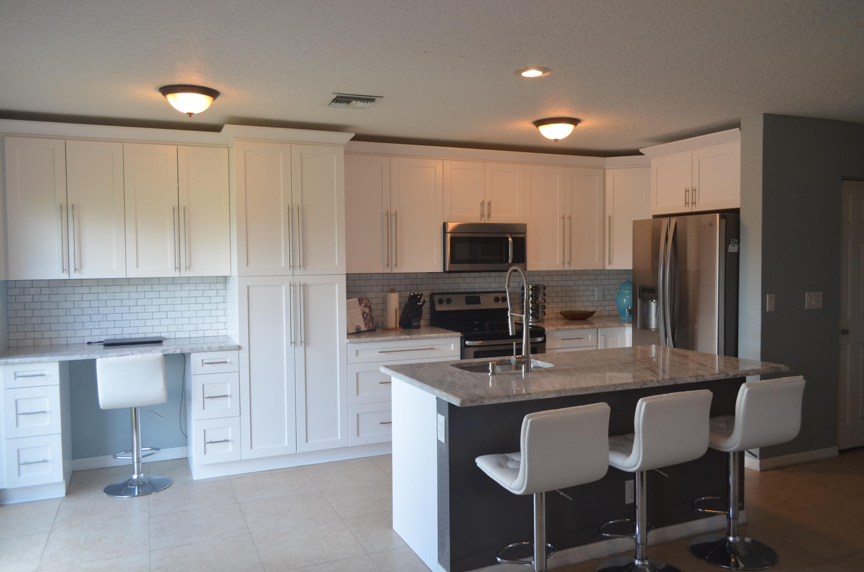 Popular Dover model (4th bedroom/office is LOFT) on beautiful lake lot w/sparkling water views, banana trees & roomy backyard. Brand new kitchen w/white shaker cabinets, granite counters, tile backsplash, planning desk, pantry & stainless steel appliances. ''Saturnia'' look tile in all living areas. ''Wood'' laminate on stairway & entire upstairs. Spacious 2nd floor master suite w/extra large walk-in closet has dual sinks, soaking tub & separate shower. Pretty powder room w/wood vanity downstairs. Knockdown Ceilings (NO POPCORN!) Fans in all bedrooms. Hurricane shutters. Please exclude washer/dryer. Guard gated community w/pool, tennis, playground, walking paths and park areas. Close to shopping & schools.