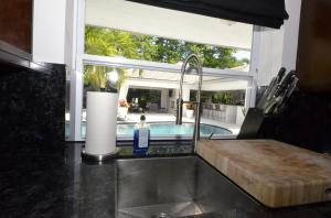 SOUTH BEACH COMES TO BOCA RATON! 4 BEDROOM, 3 FULL BATHS, GOURMET KITCHEN AND A GOURMET SUMMER KITCHEN THAT WAS FEATURED IN A MAGAZINE! THIS HOME WAS COMPLETELY REMODELED IN 2008 WITH THE FINEST UPGRADES AVAILABLE, LIMESTONE FLOORS.STEAM SHOWER, DOUBLE WHIRLPOOL TUB, BIDET, DOUBLE SINKS, WALK IN CLOSETS 4TH BEDROOM IS A DEN THAT DOUBLES AS A HOME THEATER WITH AN EPSON PROJECTOR AND PULL DOWN SCREEN, SWIMMING POOL COMPLETELY REMODELED, SUMMER KITCHEN EQUIPPED WITH VIKING APPLIANCES & STAINLESS STEEL VIKING CABINETS, INCLUDING A DISHWASHER AND ICE MAKER, COVERED DINING ROOM WITH A DOUBLE SIDED FIREPLACE, 2 SUN BRITE TV''S AND PLENTY OF POOL DECK TO LAY OUT IN THE SUN! ENJOY A SECLUDED TOPIARY TEA HOUSE AND YOUR OWN PRIVATE HERB GARDEN. PLEASE SEE THE PHOTOS NEWER ROOF, TILED GARAGE FLOO