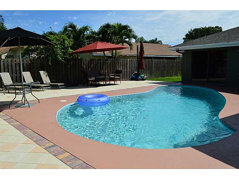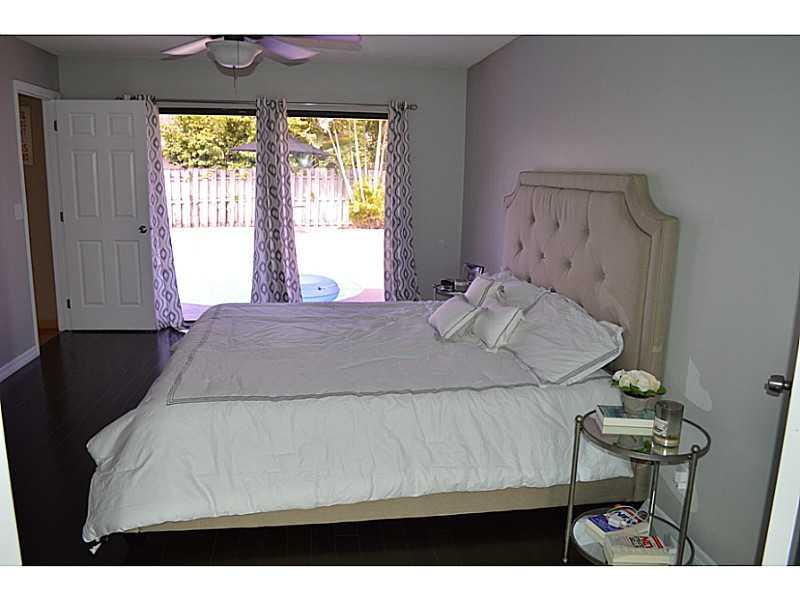 Gorgeous 4 bedroom 2 bathroom single family home with pool & 2 car garage. Features newer kitchen with stainless steel appliances, Newer Roof 2007, wood floors throughout. Split bedroom floor plan. Large master bedroom with walk in closet & renovated mas ter bathroom with double sinks, glass shower & a separate paver patio area for privacy. Laundry/Mud room also includes alarm system & speakers in ceiling. Great for entertainment glass doors overlook the pool & extended patio. No HOA and low taxes. FHA/VA