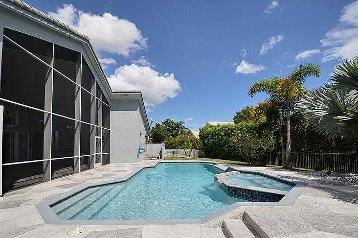 Custom built contemporary home. Cul de sac lot fenced just under 1/2 acre, play area & privacy. Newer roof, accordion hurricane shutters & panels, hurricane code screen on large covered lanai with wet bar. Huge remodeled custom oak kitchen, granite, stain less. Contemporary built-ins, Remodeled baths, Hunter Douglas window treatments & designer fixtures. 35ft heated pool/raised waterfall spa, stamped concrete patio, outdoor shower & cabana bath, tropical landscape. Oversized 3 car garage + storage area.
