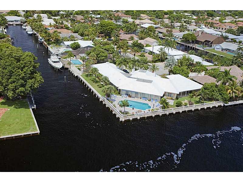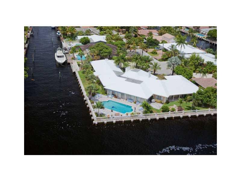 Intracoastal SE Point Lot PLUS additional adjoining lot. Over 330 feet of total water frontage with 140' on the Intracoastal and 190' on side canal. Can be divided into 2 lots. Classic Florida home with 9' ceilings sits in its ORIGINAL condition on 1/2 ac re+ lot. Home being Sold at Land Value has incredible potential to be renovated into spectacular residence, or this double lot can accommodate a sprawling new estate. Located in prestigious Coral Ridge Country Club. See brokers remarks for showing!