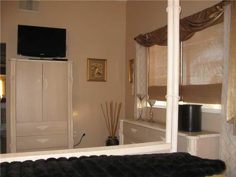 This beautiful 4 bedroom home is located in 24 hour guard gated Estancia. Home has a newer A/C, wet bar, volume ceilings, upgraded light fixtures, inside laundry, and much more. Kitchen has stainless steel appliances, large pantry, and eat in kitchen. Mas ter bedroom/bath has large walk in closet, volume ceiling, dual sinks, & roman tub & shower. One of the larger lots in the community features a heated pool & spa, large L shaped patio, fenced yard, & shed. Close to all comm amenties. Pride of ownership.