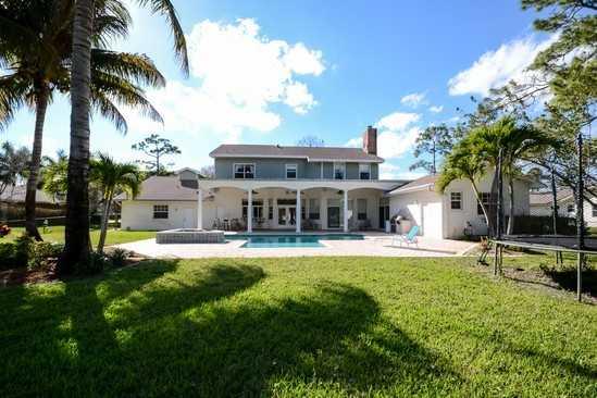 LOVELY CUSTOM 5-BR 4-BATH 2-STORY HOME BUILT IN 2000 ON 1.09 ACRE FENCED LOT ON PRIVATE STREET IN DESIRABLE NORTH PINE TREE ESTATES. SPECIAL FEATURES INCLUDE HURRICANE IMPACT WINDOWS, 2 MASTER SUITES, 2 LAUNDRY ROOMS, MEDIA ROOM & PRIVATE DEN, LARGE KITC HEN W/PANTRY & INFORMAL DINING AREA, FORMAL LIVING & DINING ROOMS, FAMILY ROOM W/FIREPLACE, LITE TOUCH LIGHTING CONTROL SYSTEM, ELAN HOME AUDIO SYSTEM, EXPANSIVE REAR PATIO W/BUILT-IN BARBEQUE, OVERSIZED HEATED POOL/SPA, GARAGE FITS 5 CARS. NO HOA!