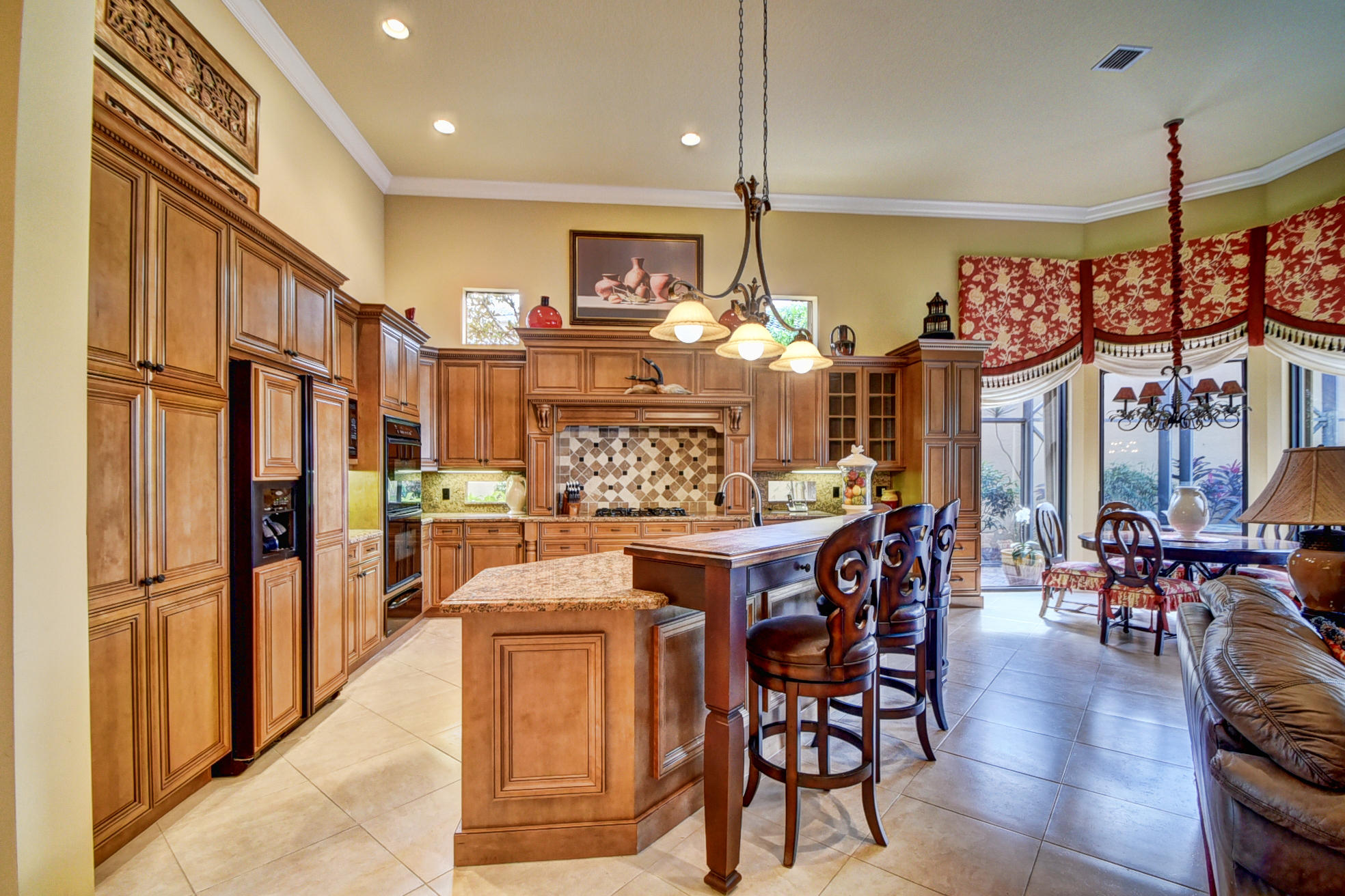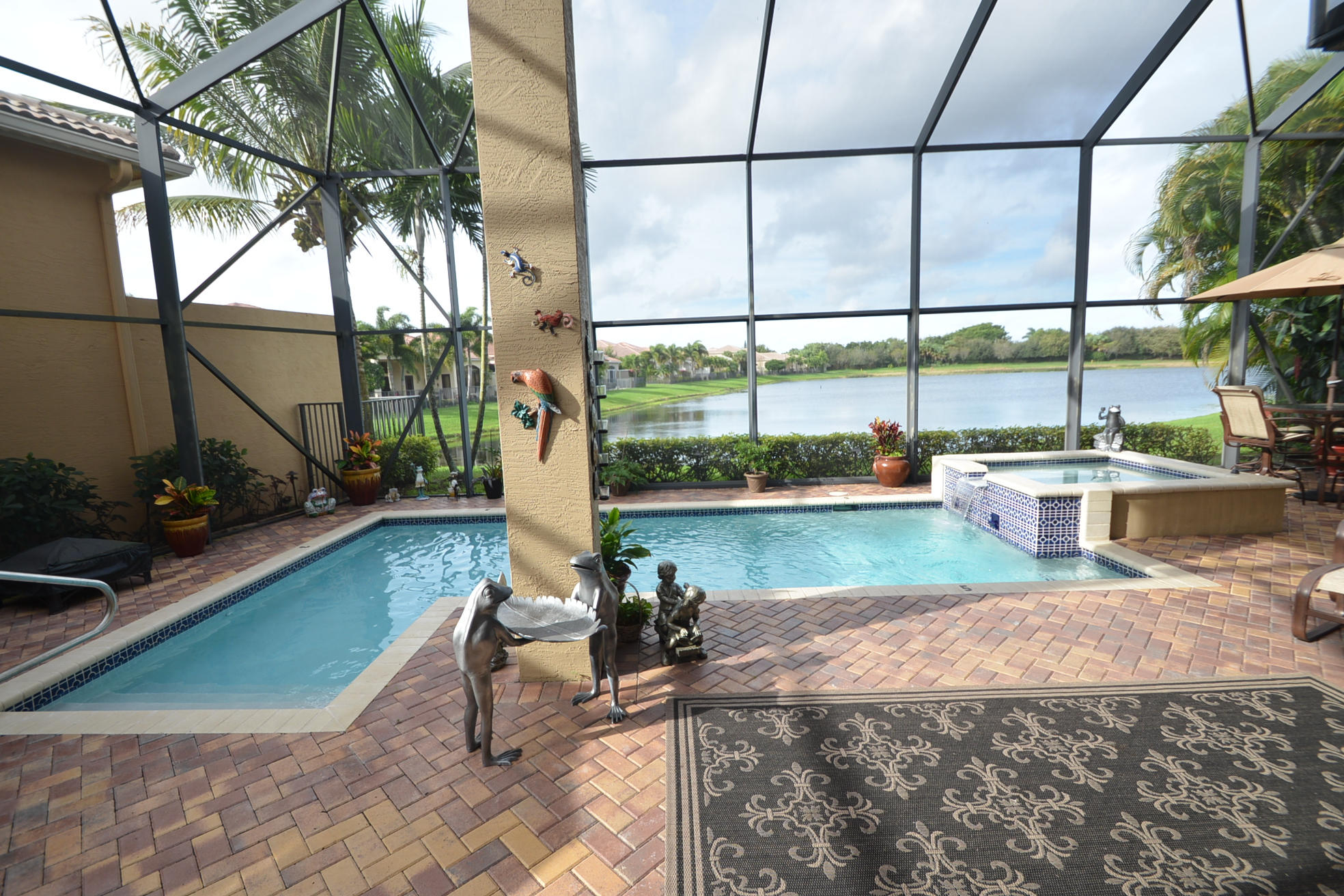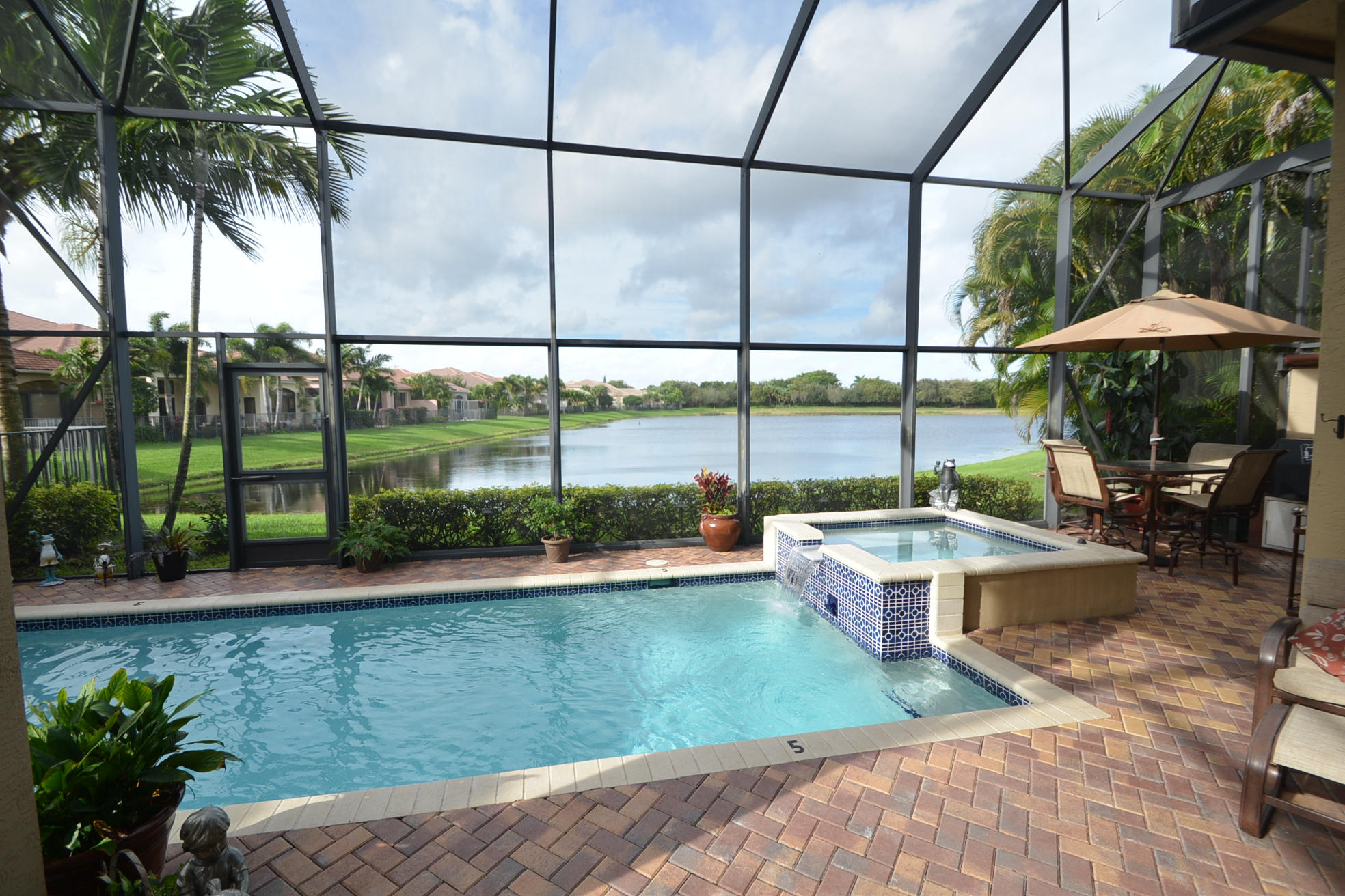 Pride of ownership is evident in every inch of this home. Both inside and out, this custom Barcelona model exudes timeless elegance. 3 bedrooms plus oversized outfitted library/convertible 4th bedroom, 3 full, 2 half baths on the most breathtaking wide and long lake lot with saltwater heated pool, spa, summer kitchen. Upgrades and professional designer details and appointments throughout including gourmet wood and granite kitchen with Bosch dishwasher, multiple drawers/pull outs, warming drawer; stunning sunken bar with wine cooler;porcelain and wood floors, crown molding, architectural niches and accents, stunning draperies and plantation wood shutters, tasteful wall units and coverings, luxurious master bath, hurricane accordion shutters, screening, generator, landscape lighting, & more!