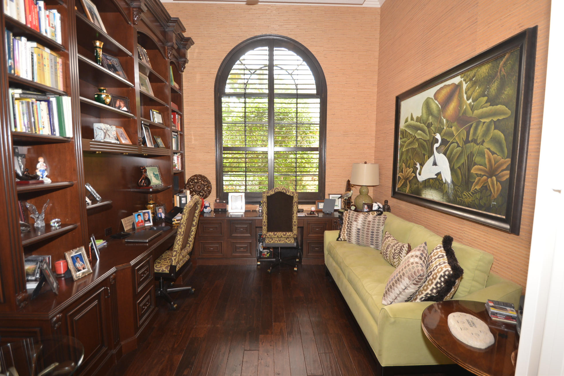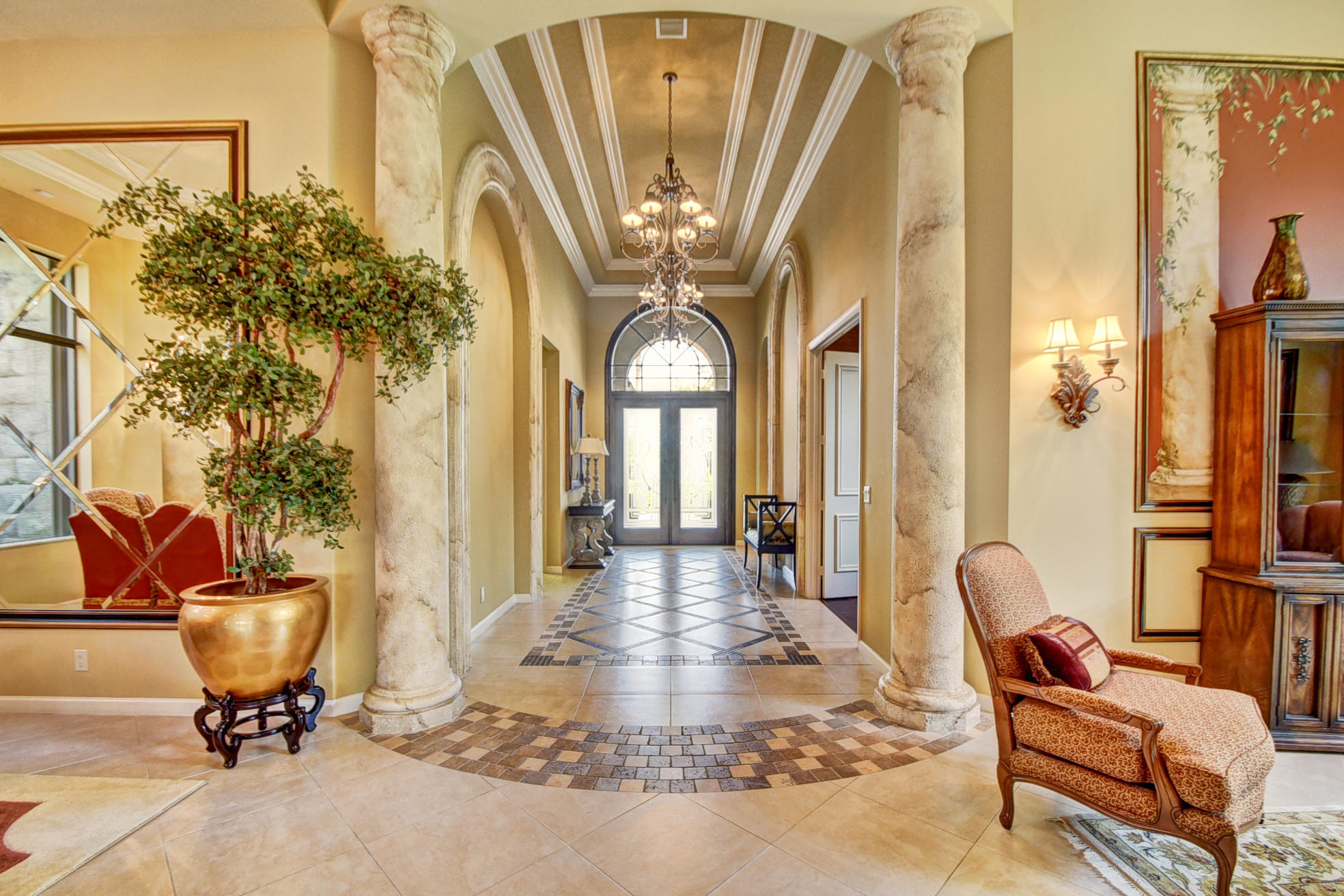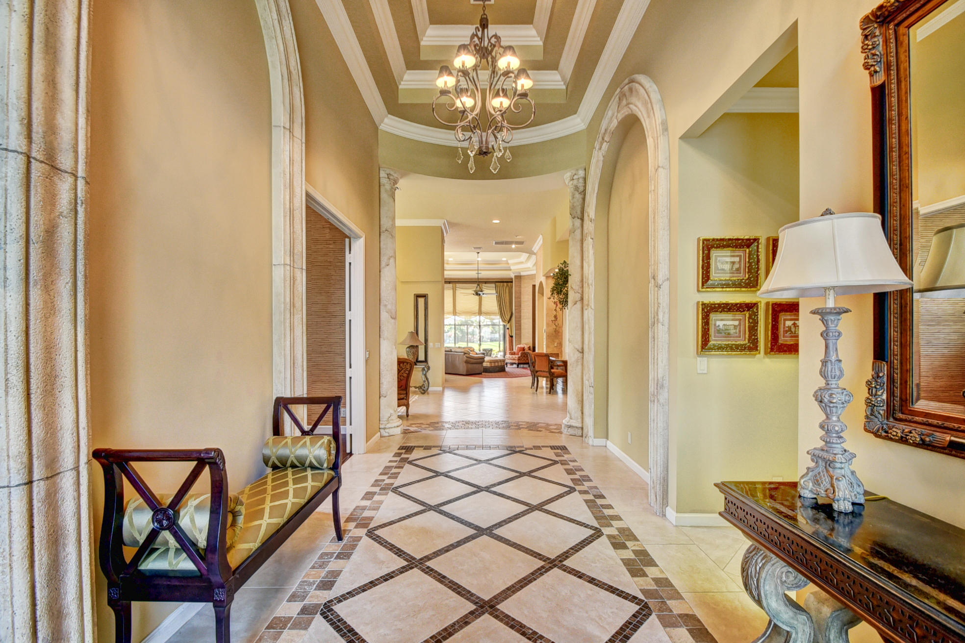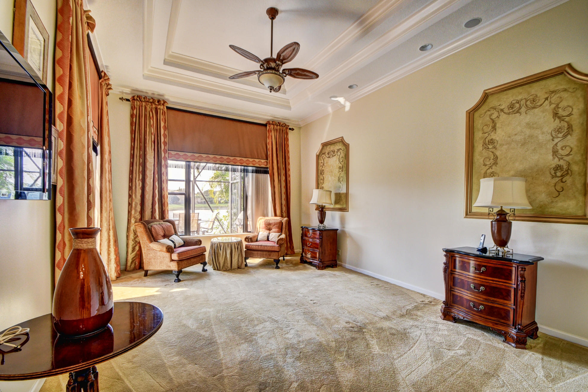 Pride of ownership is evident in every inch of this home. Both inside and out, this custom Barcelona model exudes timeless elegance. 3 bedrooms plus oversized outfitted library/convertible 4th bedroom, 3 full, 2 half baths on the most breathtaking wide and long lake lot with saltwater heated pool, spa, summer kitchen. Upgrades and professional designer details and appointments throughout including gourmet wood and granite kitchen with Bosch dishwasher, multiple drawers/pull outs, warming drawer; stunning sunken bar with wine cooler;porcelain and wood floors, crown molding, architectural niches and accents, stunning draperies and plantation wood shutters, tasteful wall units and coverings, luxurious master bath, hurricane accordion shutters, screening, generator, landscape lighting, & more!
