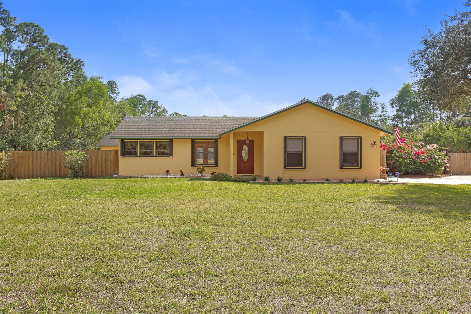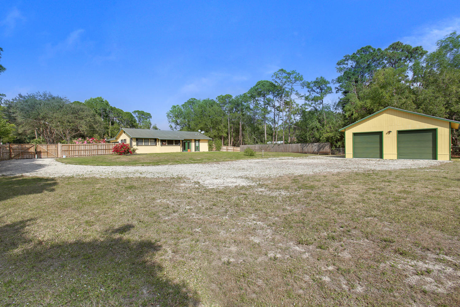 LOCATION, LOCATION, LOCATION!! NO HOA !! BRING ALL THE BOATS, RV'S, TRAILERS, AND TRUCKS !!! Amazing opportunity to own a single family home in The Acreage. This property has 2 Bedrooms, 2 Bathrooms, 2 Car Garage, Detached 2 Bay Workshop (30x30 with 12ft rafters ran with 220 volt wiring throughout), and 2 RV hookups (plug in's) in the back yard with 50 amp service. The home offers a split floor plan, stainless steel appliances, tile, updated bathrooms, beautiful landscaping, and is completely fenced with a brand new poured concrete driveway. The property has 1.25 acres and is located off one of the few paved roads in The Acreage. Call us today for your private showing.