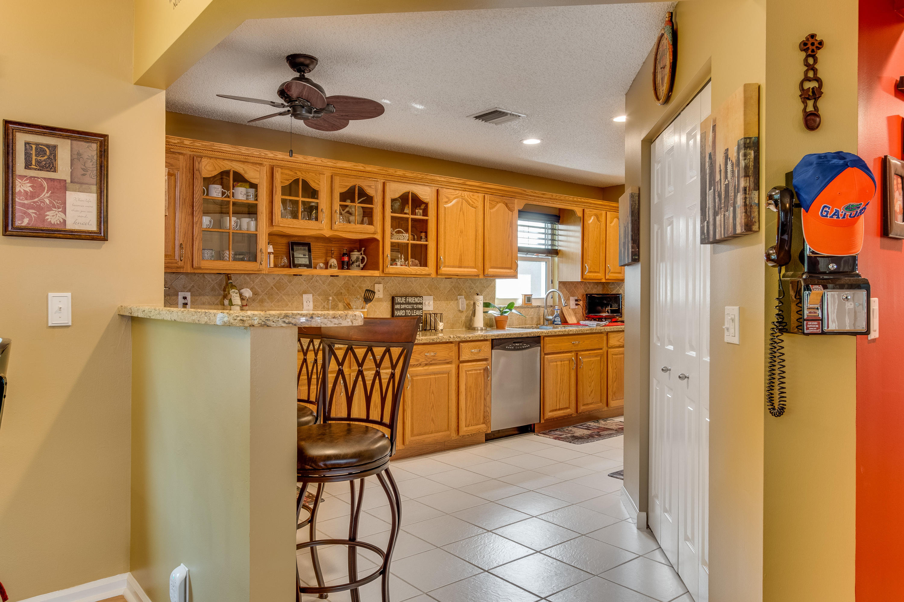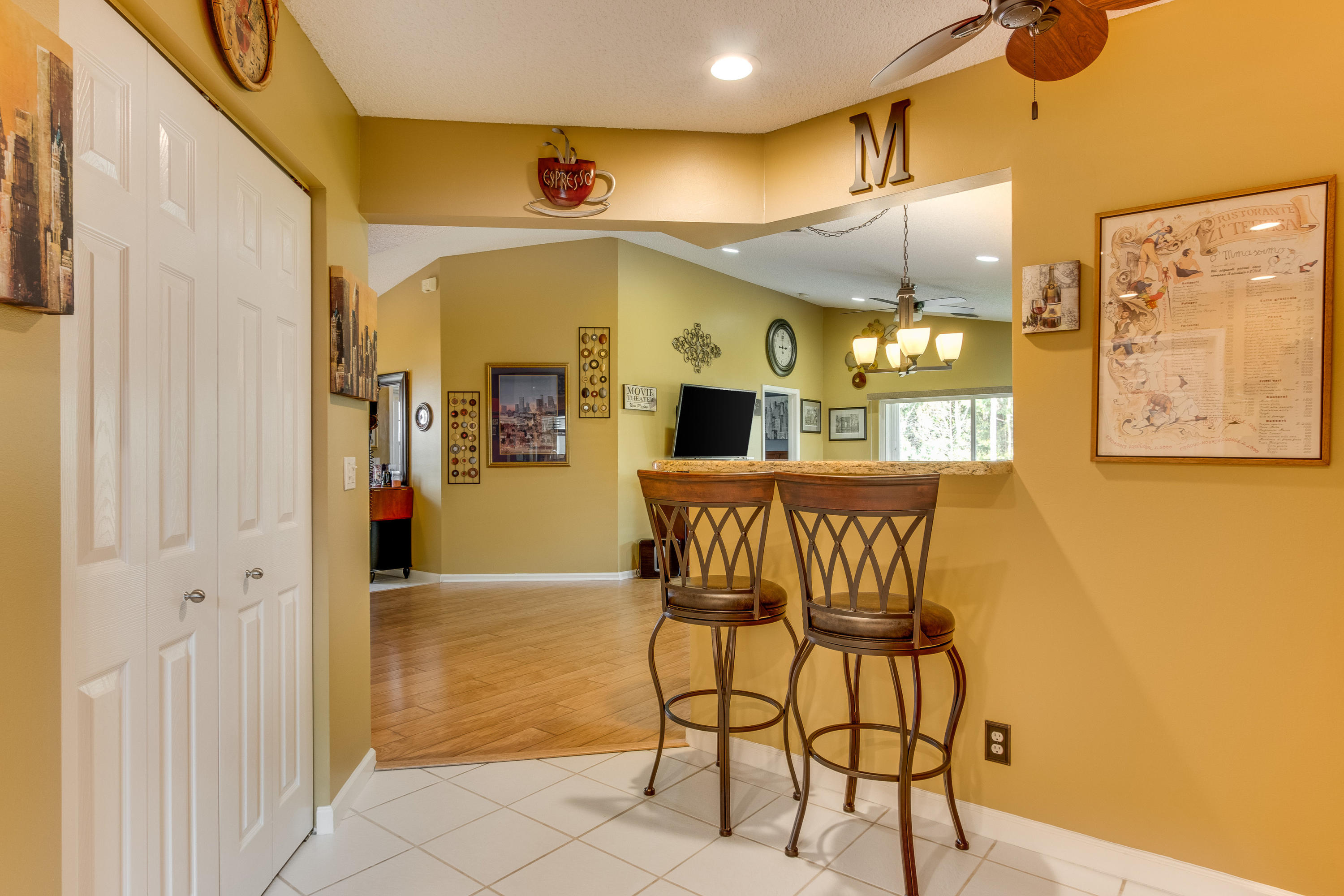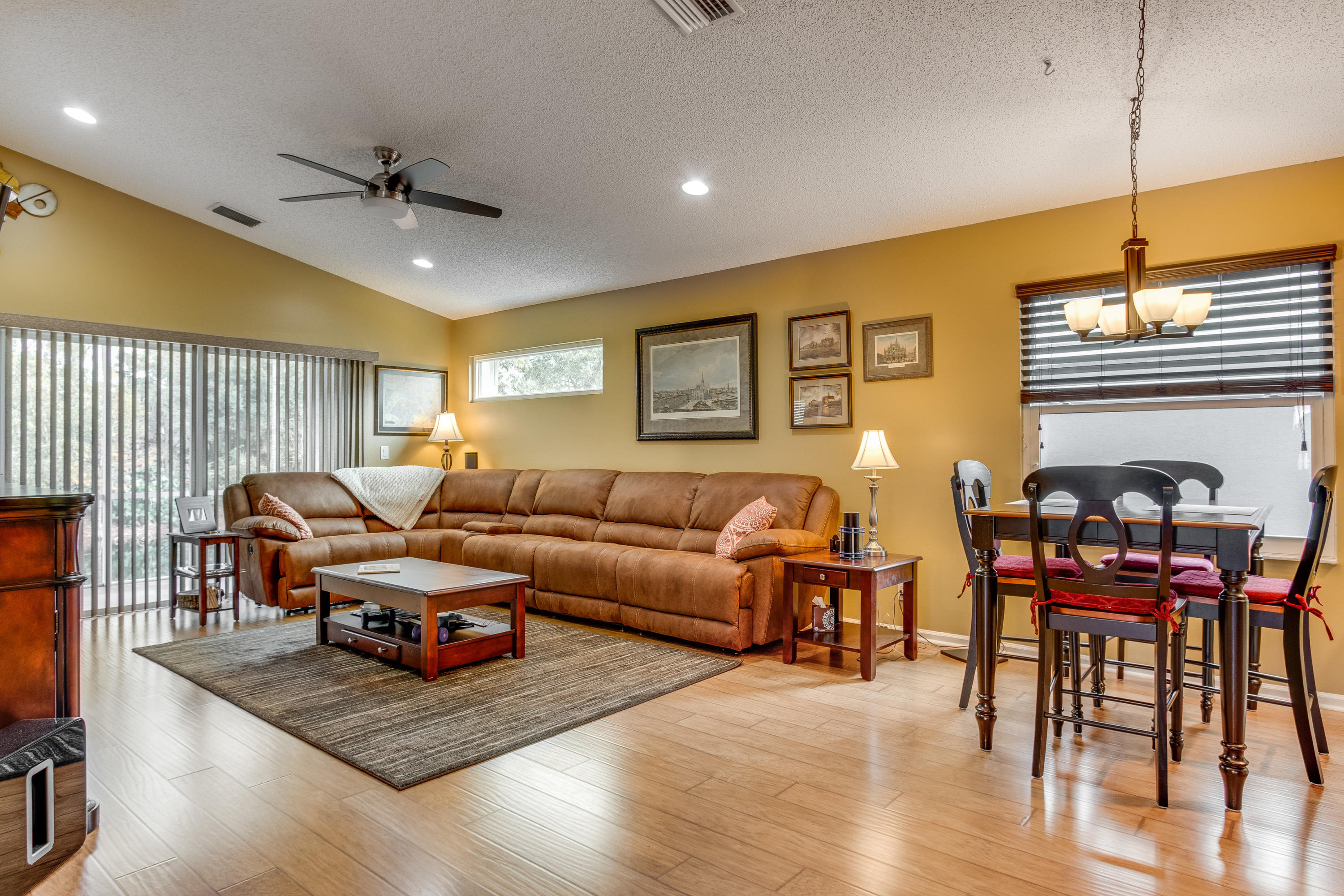 MAGNIFICENT! Lakefront remodeled home in the resort style community River Bridge! Eye catching curb appeal including lush landscaping & a 2 car garage welcome you inside where you will be wowed by the spacious open floorplan, soaring ceilings, & upgrades throughout. The chef's dream kitchen features wood cabinetry with crown molding, granite counters, stainless steel appliances, stone tile backsplash, pantry, & barstool seating. The kitchen is open to the dining room & great room. Stunning wood floors flow throughout the open floorplan. The great room is bright with natural light from sliders that offer panoramic lake & preserve views. The upgraded flooring continues in the large master bedroom which features a spectacular walk-in closet with custom built-ins as well as an en-suite bath