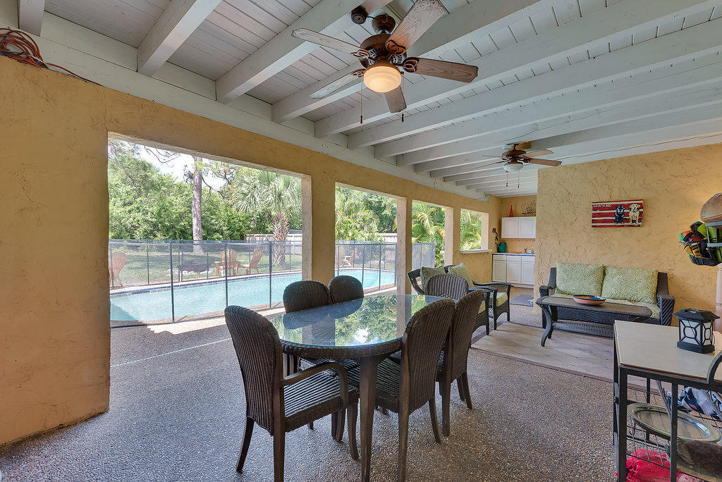 Wow, one of the largest lots in Estancia! Beautifully updated 4/2.5 single family pool home. The floor plan features an extra den off family room plus 4 bedrooms, formal dining room and living room with fireplace. The kitchen has wood cabinets, granite counters, large pantry and a built in corner table. Light colored laminate floors through out entire home. Master bedroom has large walk in closet with built in shelving and beautiful master bath redone with light wood cabinets, granite counters, large shower, whirlpool tub, and custom tile. Cabana bath redone. Walk out back to a huge covered patio, built in cabinet with sink, nice size pool, totally private fenced in over sized yard! Community has private park!