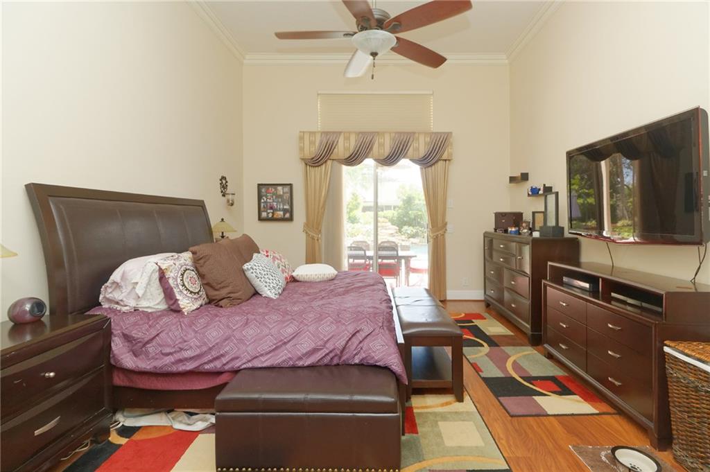 GORGEOUS TRIPLE SPLIT 4 BEDS/3 FULL BATHS PLUS DEN PERFECT FOR OFFICE LOCATED ON A QUIET CUL DE SAC IN GATED WINDSOR BAY. 3 CAR GARAGE HOME FEATURES OVERSIZED SLIDING GLASS DOORS OVERLOOKING JANDY AQUALINK CONTROLLED POOL/SPA W/WATERFALL IN YOUR IMPECCABLE BACKYARD. GOURMET KITCHEN WITH GRANITE COUNTER TOP, COOKING ISLAND, STAINLESS STEEL APPLIANCES, CROWN MOLDING, CUSTOM DRAPES AND WINDOW TREATMENTS. MASTER BATH HAS DUAL SINKS, SEPARATE ROMAN TUB AND SHOWER.