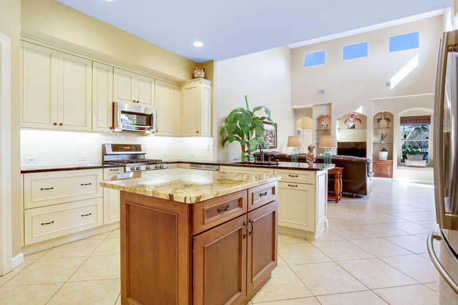 This beautiful 5 bedroom/4 bath waterfront home has been meticulously maintained with more than $50,000 in stunning kitchen and master bathroom upgrades. The chef kitchen has granite counter tops with a natural gas stove, custom solid wood cabinets with pull outs in every cabinet and soft close drawers, special LED cabinet lighting. The master bedroom overlooks the lake with a master bathroom that feels like a spa. Travertine tile, marble his/her 36'' vanities, shower with Moen Rain Shower head. His/Her closets include California closet cabinetry. The upstairs loft consists of sitting area, custom craft area with storage and granite countertop, one bedroom and one full bath totaling 639 square feet. The water heater and dryer are powered with natural gas. Community has pool, tot lot,