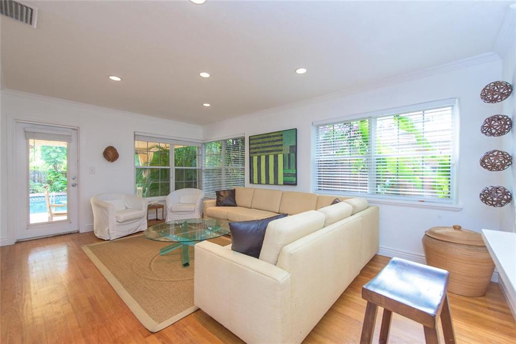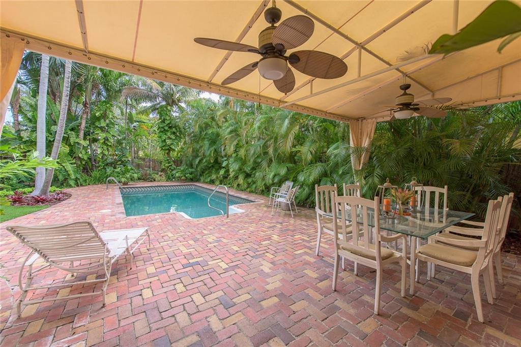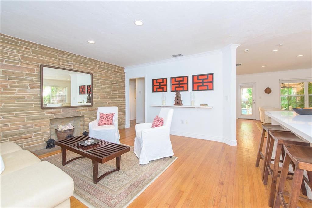 Victoria Park 3BR/2BA pool home offers; hardwood floors, a tile roof, Chicago brick paved drive, walkways and patio, fireplace, built-ins and a stylish new kitchen. An open floor plan boasts a central kitchen with spacious breakfast bar and opens to both living and family rooms. One of two guest rooms offer a wall of built-ins ideal for use as a den. Another of the bedrooms has a bath in suite and the third boasts a roomy walk-thru closet. A covered terrace overlooks a lushly landscaped yard & pool