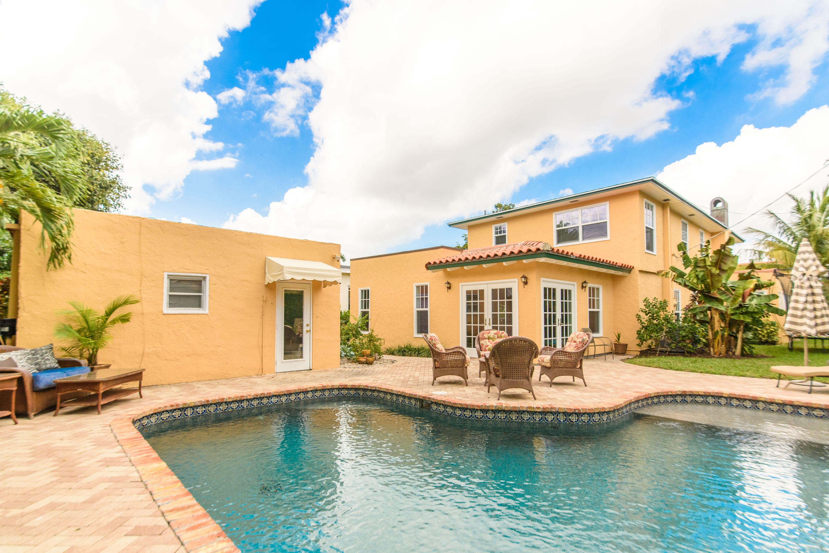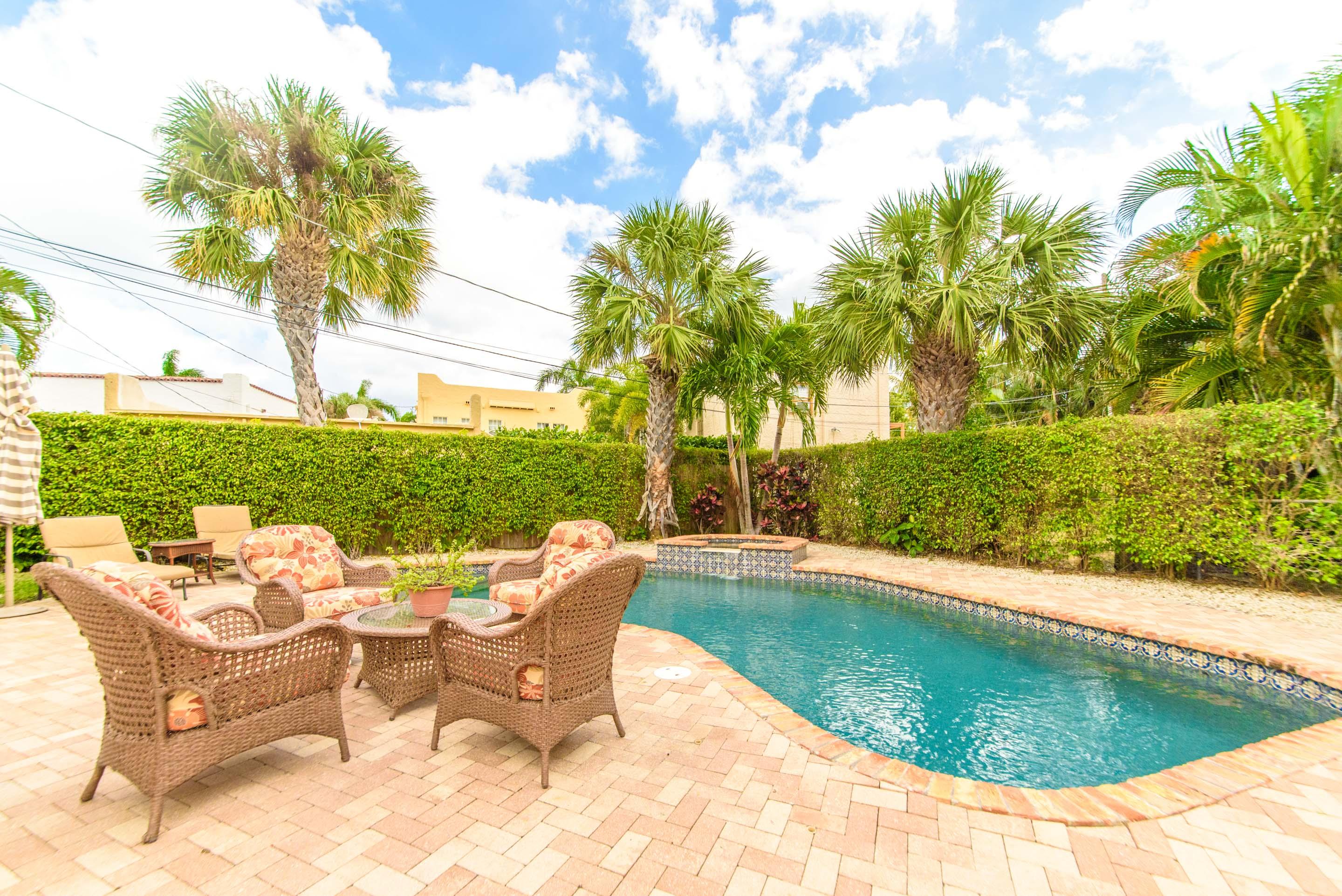 This charming renovated 3 bed 2.1 bath plus den pool home sits in the heart of Prospect Park. Updated with impact glass throughout, custom kitchen with stainless steel appliances and granite counter tops along with, a custom pool and spa surrounded by chicago brick deck allow for easy South Florida living. Beautiful original wood floors, fireplace and pecky cypress ceilings throughout speak to the true character of this 1920s home. Walk to the beautiful Prospect Park on the intracoastal waterway or enjoy a bike ride along Flagler Drive. Minutes to the airport, Palm Beach, Beaches, City Place, local restaurants, shopping and A rated schools.