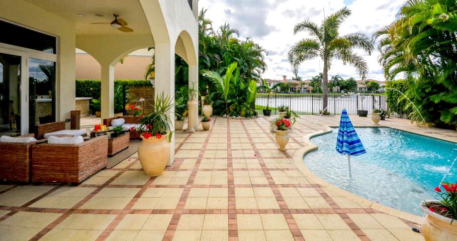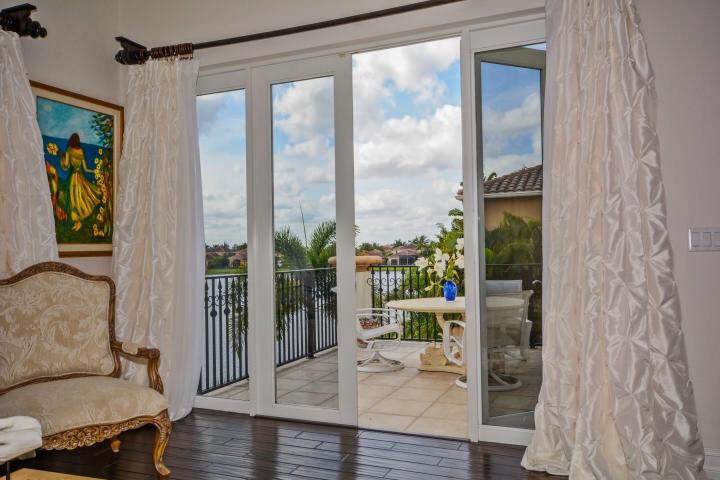 Bright, beautiful 6 bedroom, 5.2 bath estate with a premium lake view. Notable features of this home include a large office, marble flooring, private elevator, marble fireplace, natural gas range, wood flooring in the master bedroom, large balcony off of the master suite, volume ceilings throughout, hurricane shutters, immense patio area with pool perfect for entertaining, covered loggia and much more! Beautiful community club house with tennis, resort style pool, basketball, gym, and spa. MOTIVATED SELLER...BRING OFFERS!!!