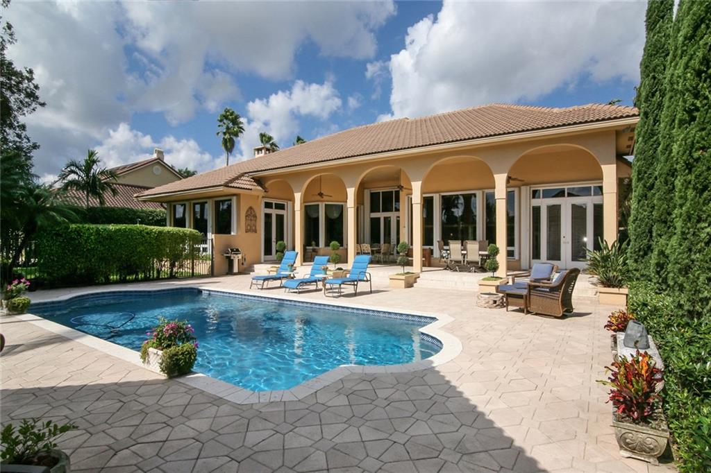 Stunning 4/3.5 estate home in The Hamlet of Davie .Chef’s kitchen w/superior finishes including: Thermador appliances, double ovens, center island, custom cabinetry. Imported stained glass/mahogany doors, resort style pool w/guest house, full bath, huge master suite w/sitting area& separate office/gym room. 3 car side entry air conditioned garage. A-rated schools, close to shopping, dining and all major commuting routes.
