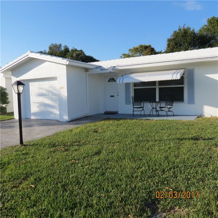 Lovely Leisureville 55+ Community. Beautiful ceramic tile throughout, 2 bedroom, 2 bath home with family room and private back yard and 1 car garage. Kitchen all redone in 2013. Master bath redone 2014. All new paint inside and out. Some impact windows, rest have shutters. Community takes care of lawns and paints houses every 4 years! Heated pool, 9-hole golf, clubhouse with lots of activities and courtesy bus to shopping and restaurants. Great place to live. Relax and enjoy with no worries.