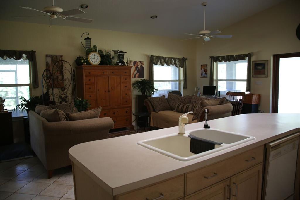2+ acres, horses ok. Features: gas fireplace, Anderson hi-impact windows, (Low FPL bill,) skylights, etched french doors, 2 zone A/C 2 + 3 ton. Concrete "safe" room, large storage room, Master BR has 2 walk-in closets, roman tub, separate shower. Extra 58 ft garage + 2 rooms, own electric, A/C, internet: possibilities; may be guest house (needs bathroom.) 2 deep wells: 200 ft for drinking water; 50 ft for 3 zone pop-up sprinklers; Screened patio with grill, sink. Rural but near I-75, I-595, shopping.