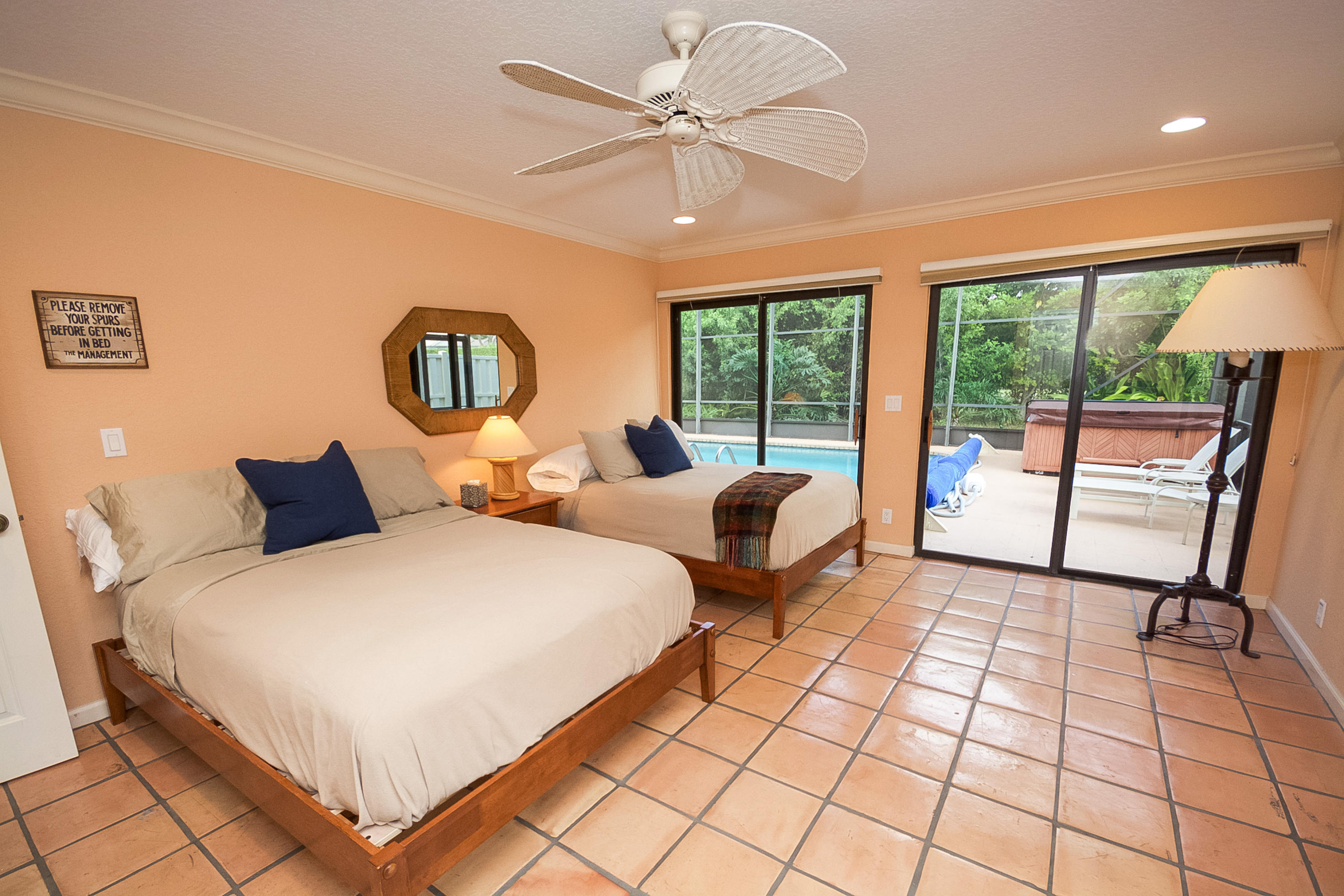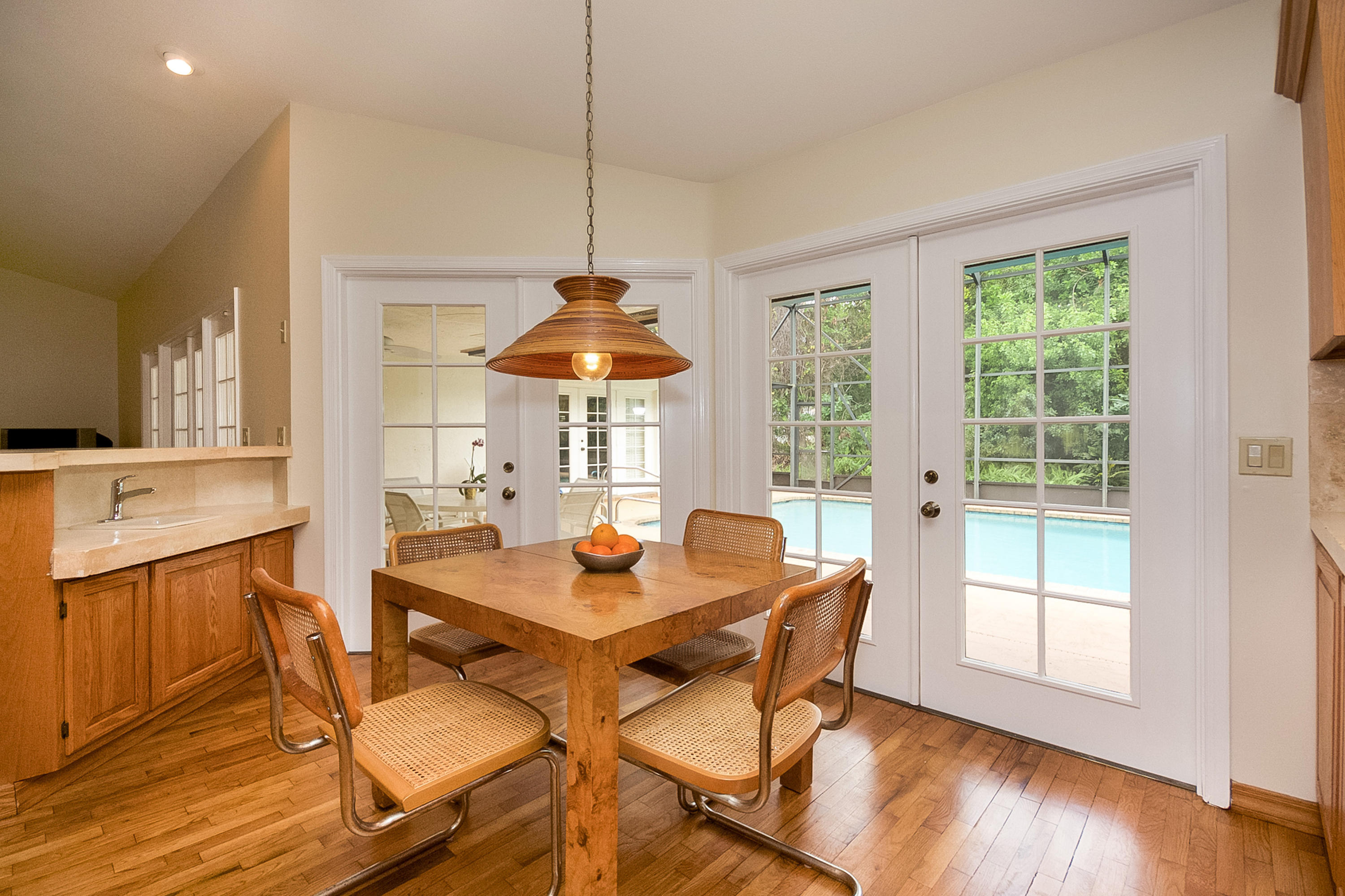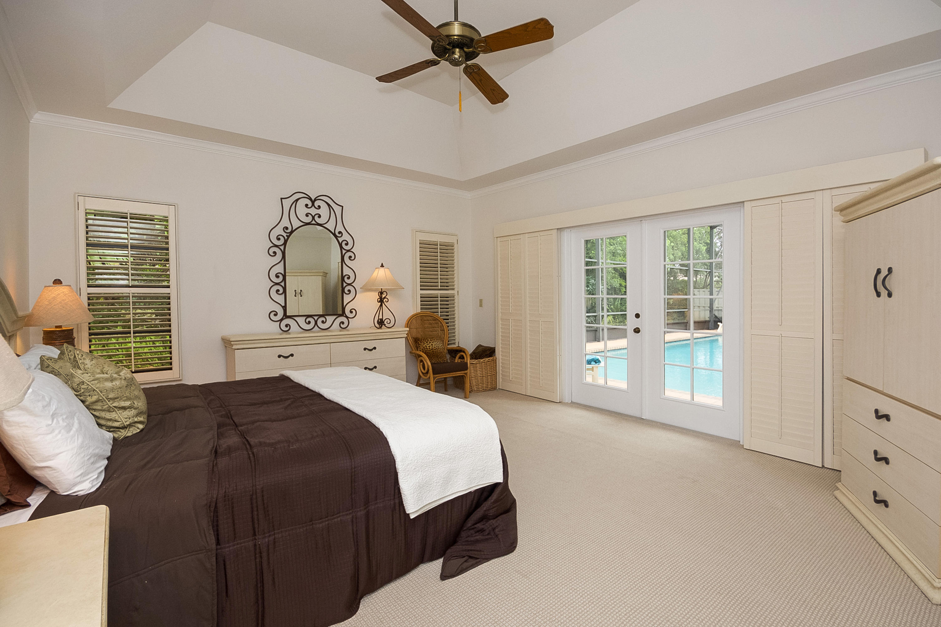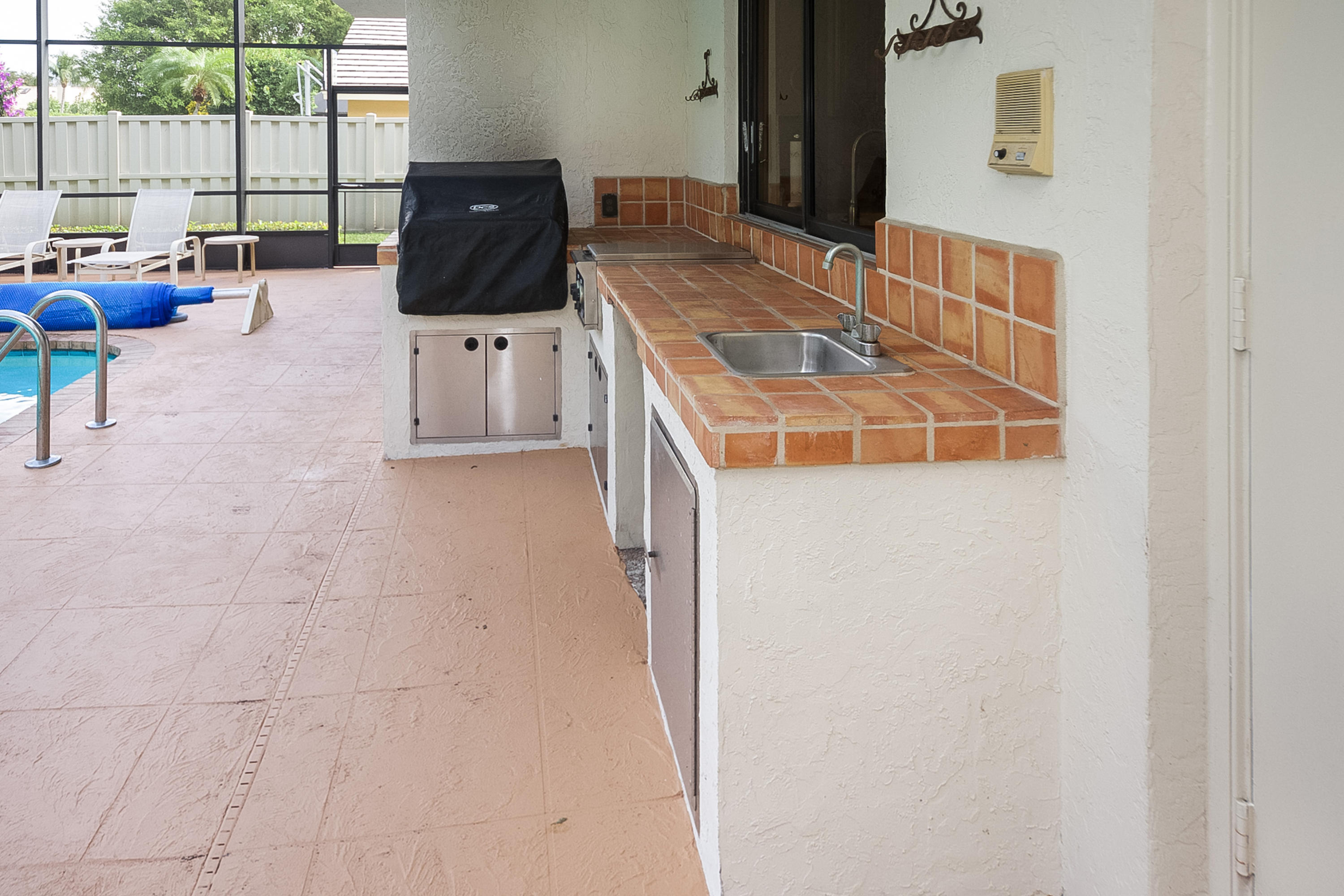 A beautiful 6 bedroom, 5 bath pool home on a secluded 1/3 acre private lot, features volume ceilings, hardwood floors, French doors, summer kitchen, fireplace and guest wing with private entry. Spa-like master bath features a steam shower & relaxing sauna. Enormous pool with new pool heater and screen enclosed patio offers fabulous entertainment space. Woodfield Hunt Club is centrally located in Boca Raton, near the best public and private schools, Town Center Mall and easy access to FL turnpike and I-95.