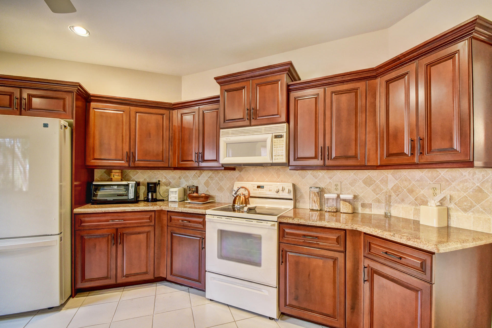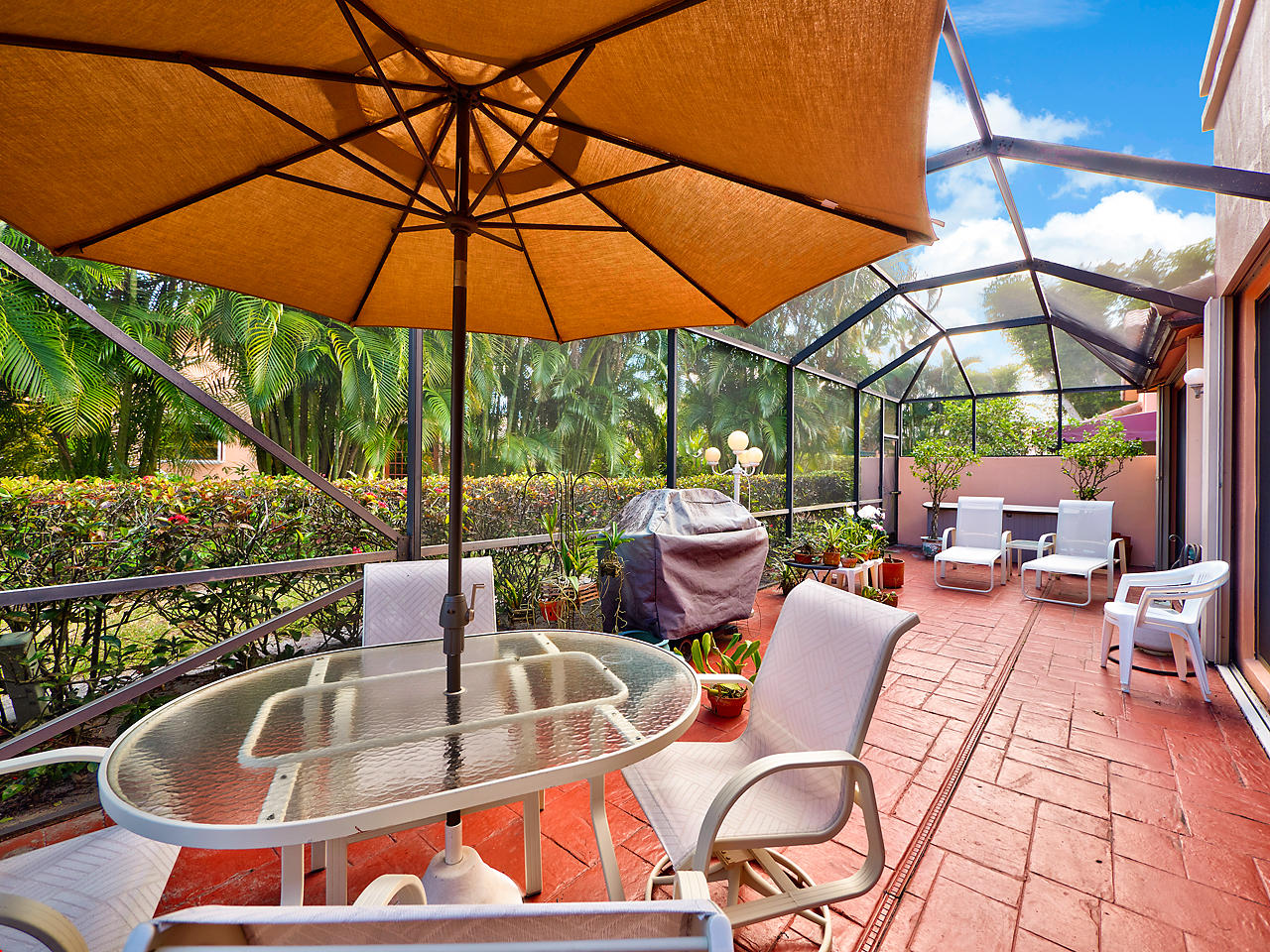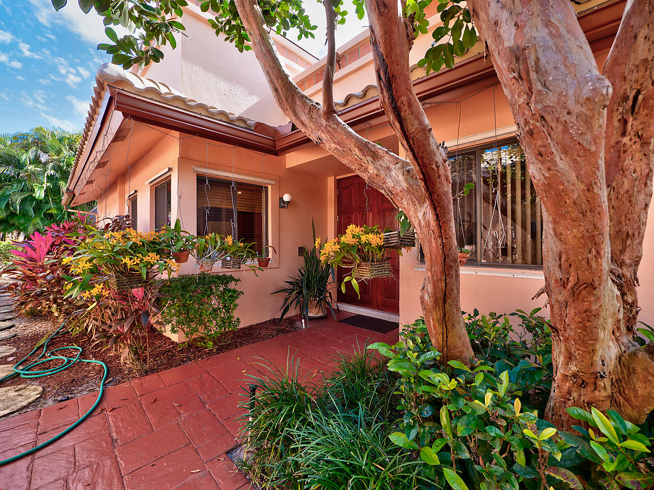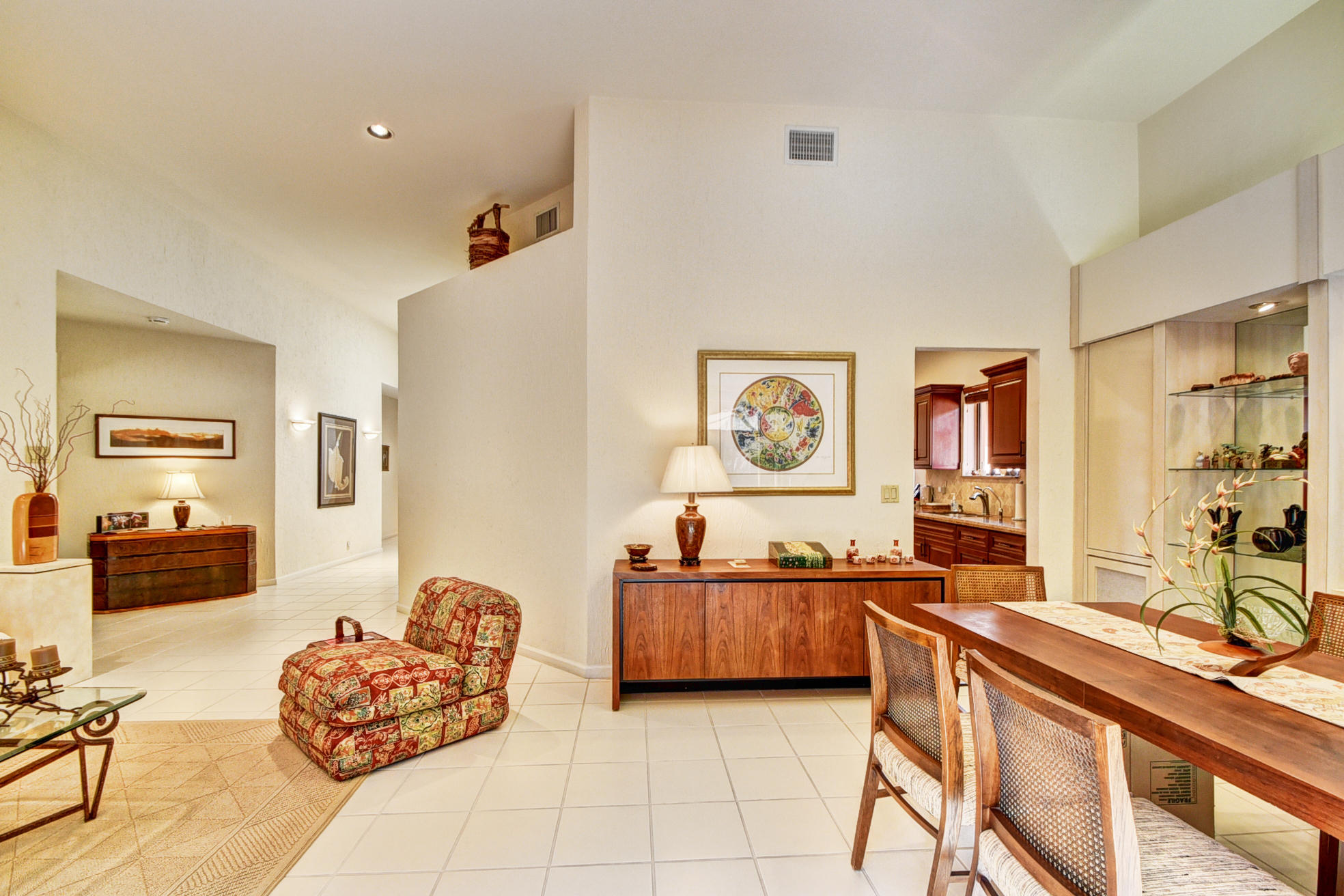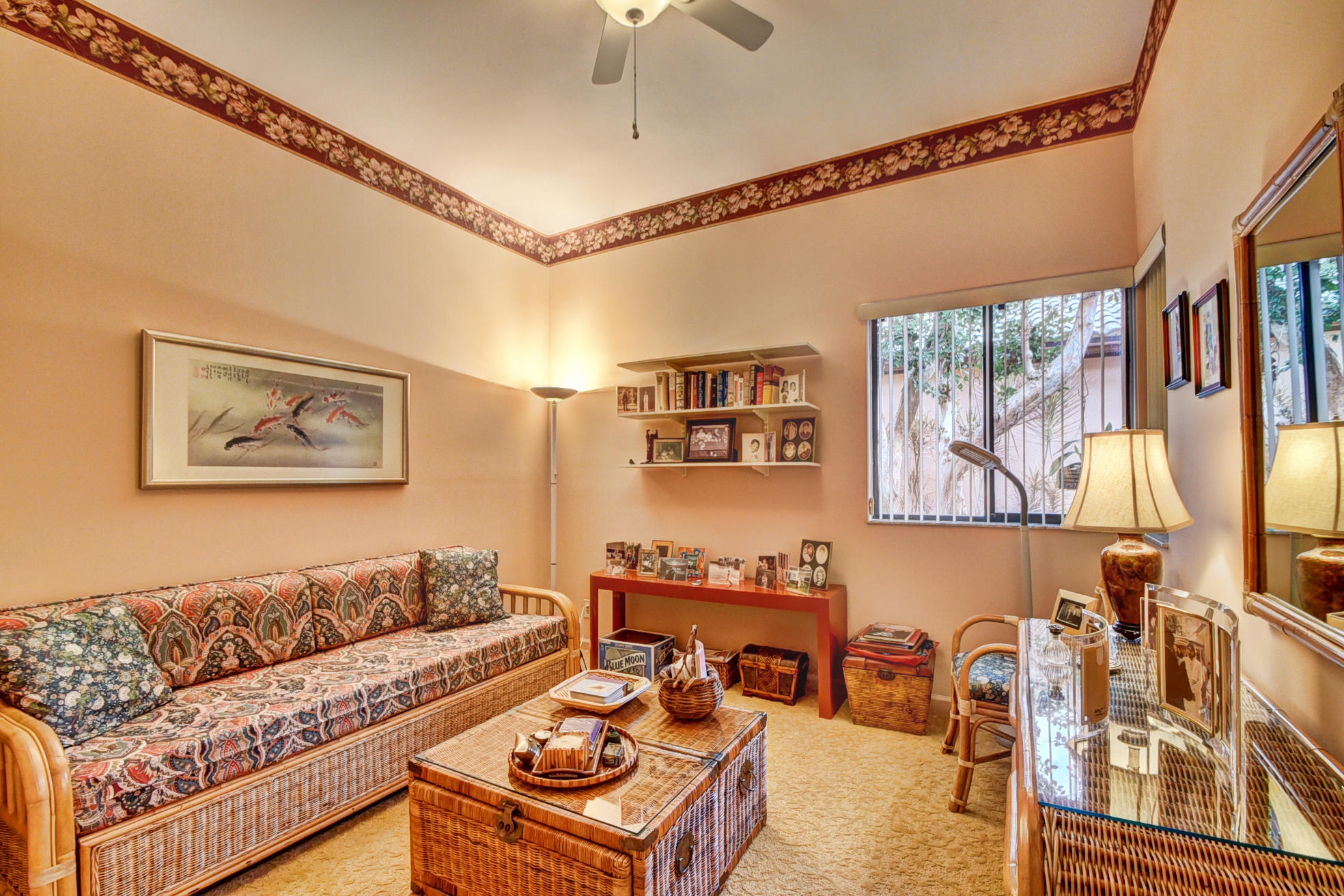 Beautiful Mediterranean fully updated one story single family home in prestigious Villa Flora section of Boca Pointe. Spacious & bright floor plan with high ceilings! Former model home, very desirable''Capri'' model has 3 bedrooms, all w/nice sized closets & 2 baths. Fabulous foyer entrance w/sky light. Neutral tile through living area & new high end carpet in bedrooms. New Roof!!(1 Yr old)/New hot water heater! Updated, oversize kitchen w/granite counter tops, wood cabinets, tumbled marble backsplash, custom pull out draws & desk area. Huge master bed/closet w/custom shelving. Large screened in patio. Most furniture negotiable. Accordian Shutters.All ages/pet friendly.Man Gated. Boca Pointe where membership is NOT mandatory!OPTIONAL golf/tennis/gym & social memberships available.