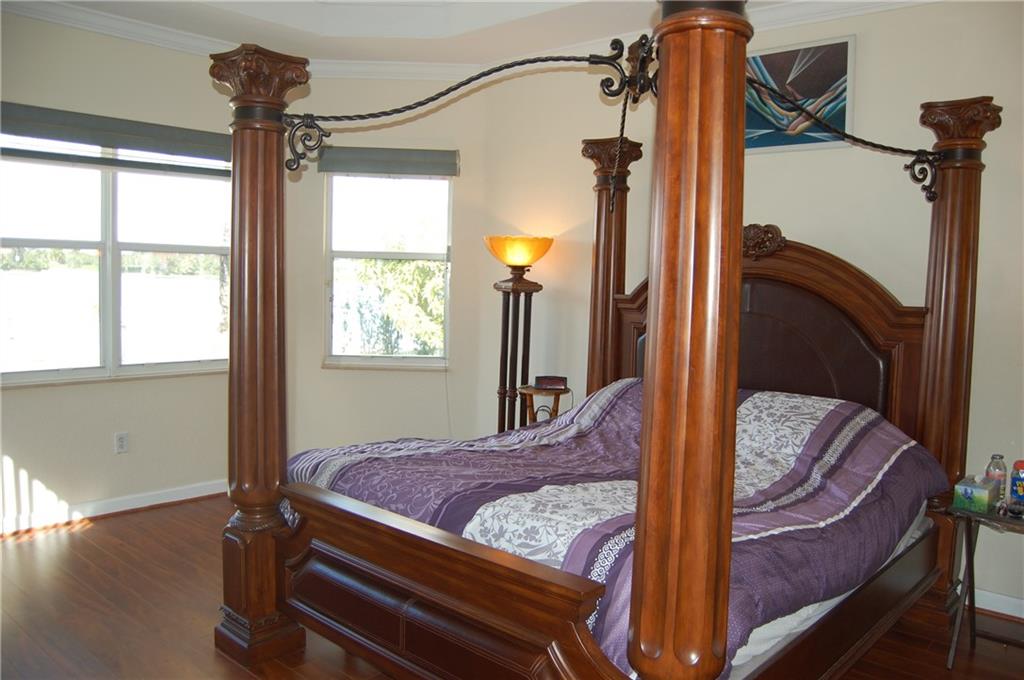 Welcome to this beautiful original owner luxury waterfront pool home. Located in a gated community this home features 5 bedrooms and 5 full bathrooms, 5th bedroom/office near foyer. New 2 zone AC, volume ceilings, large family room and kitchen, 3 car garage, and spectacular pool and deck area for entertaining. Luxury master suite with sitting area, 2 walk in closets and huge master bath with spa tub and separate shower. Fenced with fruit trees in the side lawn area. Home is impeccably maintained.