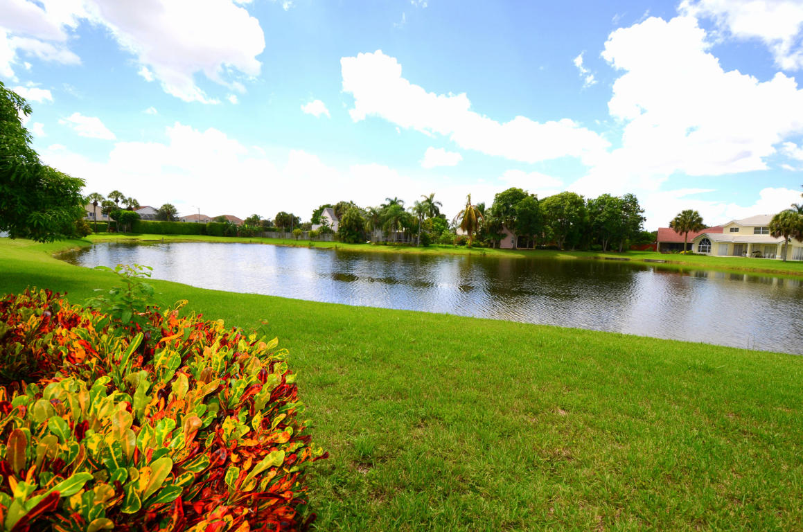 Bright,spacious single family home features huge vaulted ceilings, on a large lake w/ a huge screened-in patio. Open, eat-in kitchen w/ 2 pantries and lots of cabinet space(extra tall cabinets),large french door refrigerator. Formal dining room. Formal living room. Gorgeous lakefront view from most rooms. Custom built-in book shelves. Master bath has dual sinks, roman tub and stand up shower. 2008 barrel tile roof, newer a/c & hot water heater. Community features a Pool, Basketball court, Spa- hot tub and more! There is no country club to join...low HOA fees....Pets ok....All ages...A Rated Schools!! Investors, its ok to rent right away after purchase!