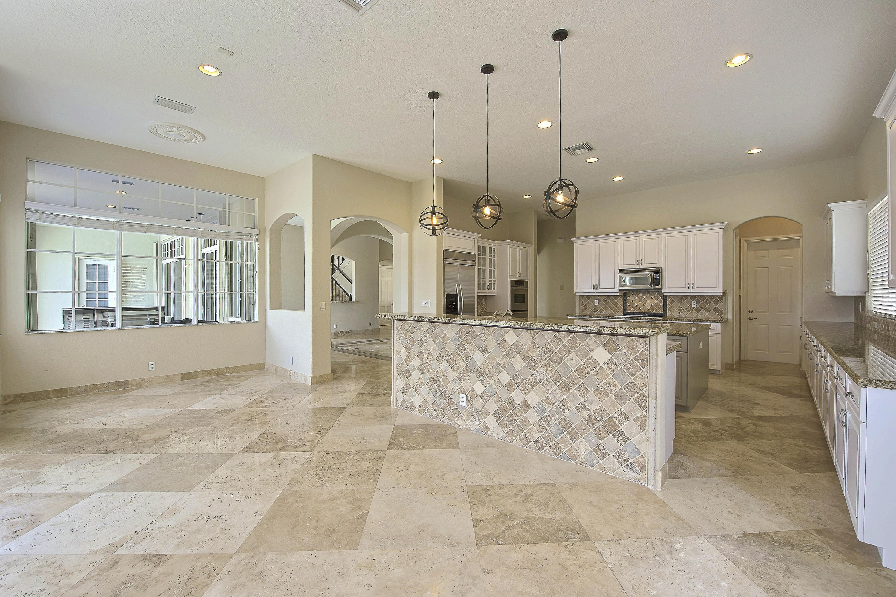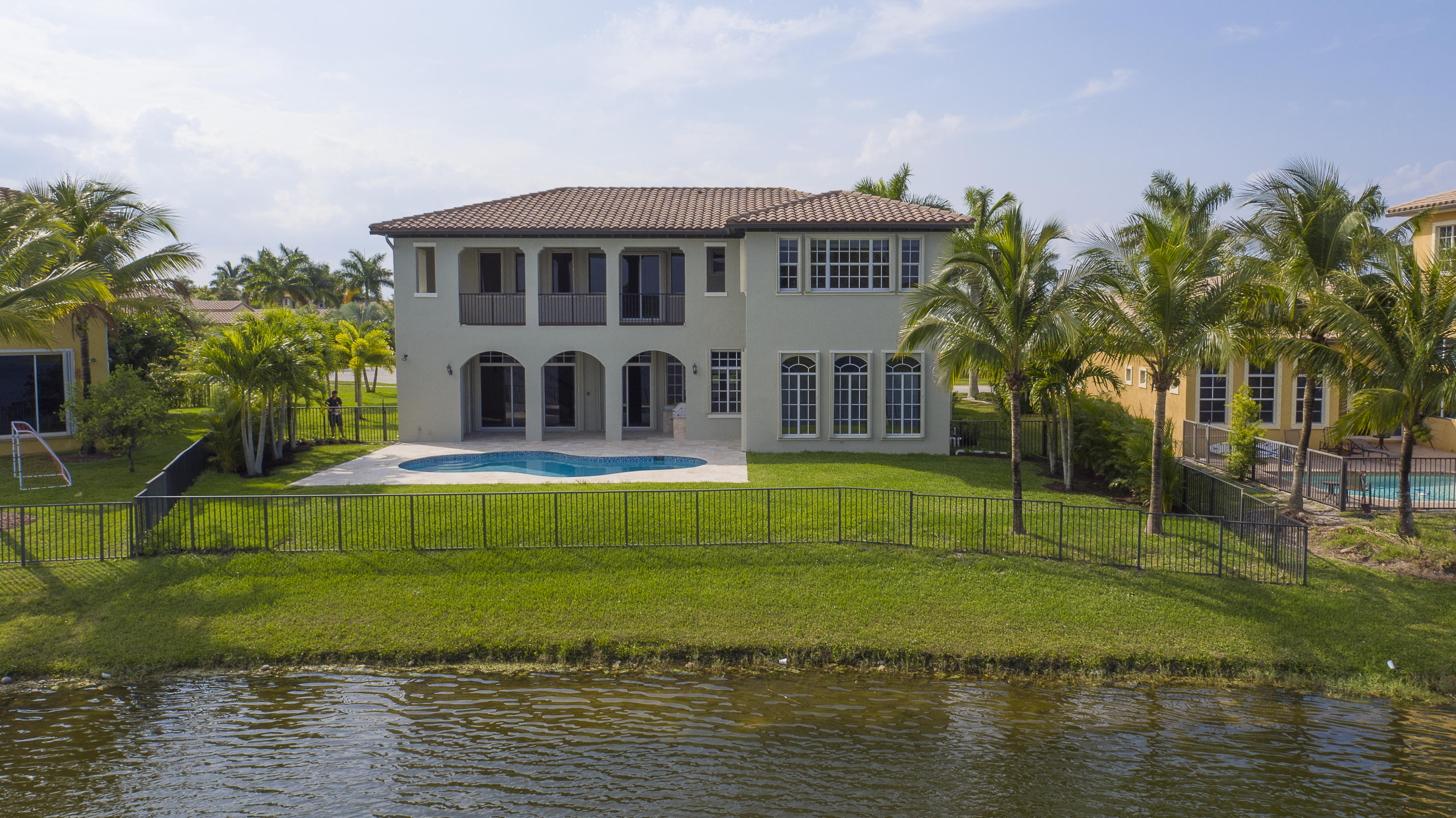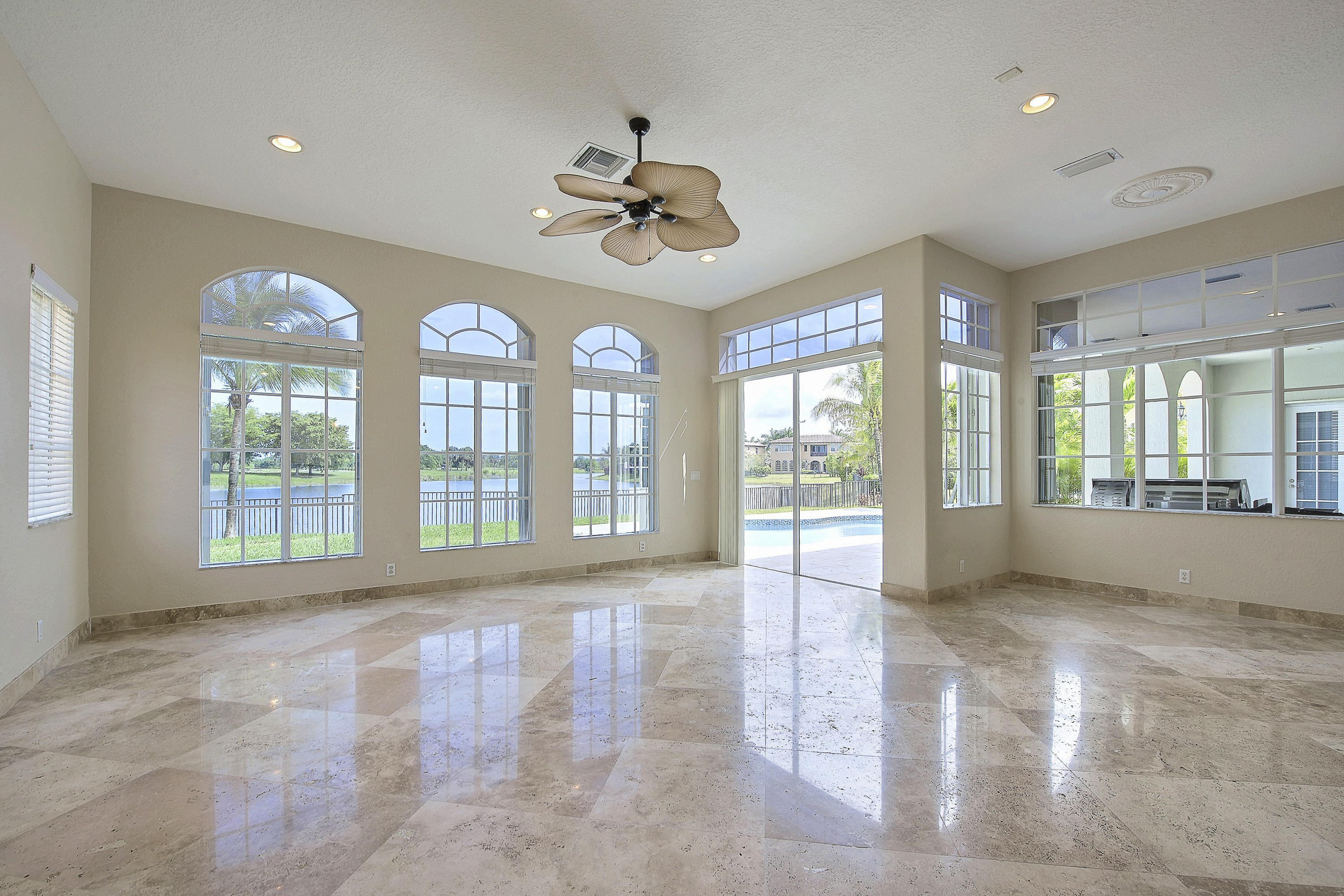 Amazing Modern design with 300 ft of endless water & golf views. Nestled in a cul de sac, this serene pie shaped expansive lot has a private travertine pool deck with great sun and glass tile pool, new 48'' summer kitchen shaded by the enormous covered lanai, new rheem a/c, new flooring, accordian shutters all around and has been completely renovated to new condition.