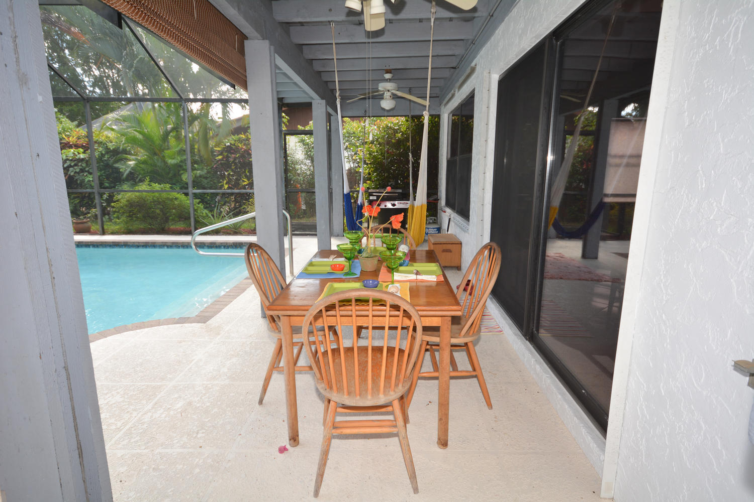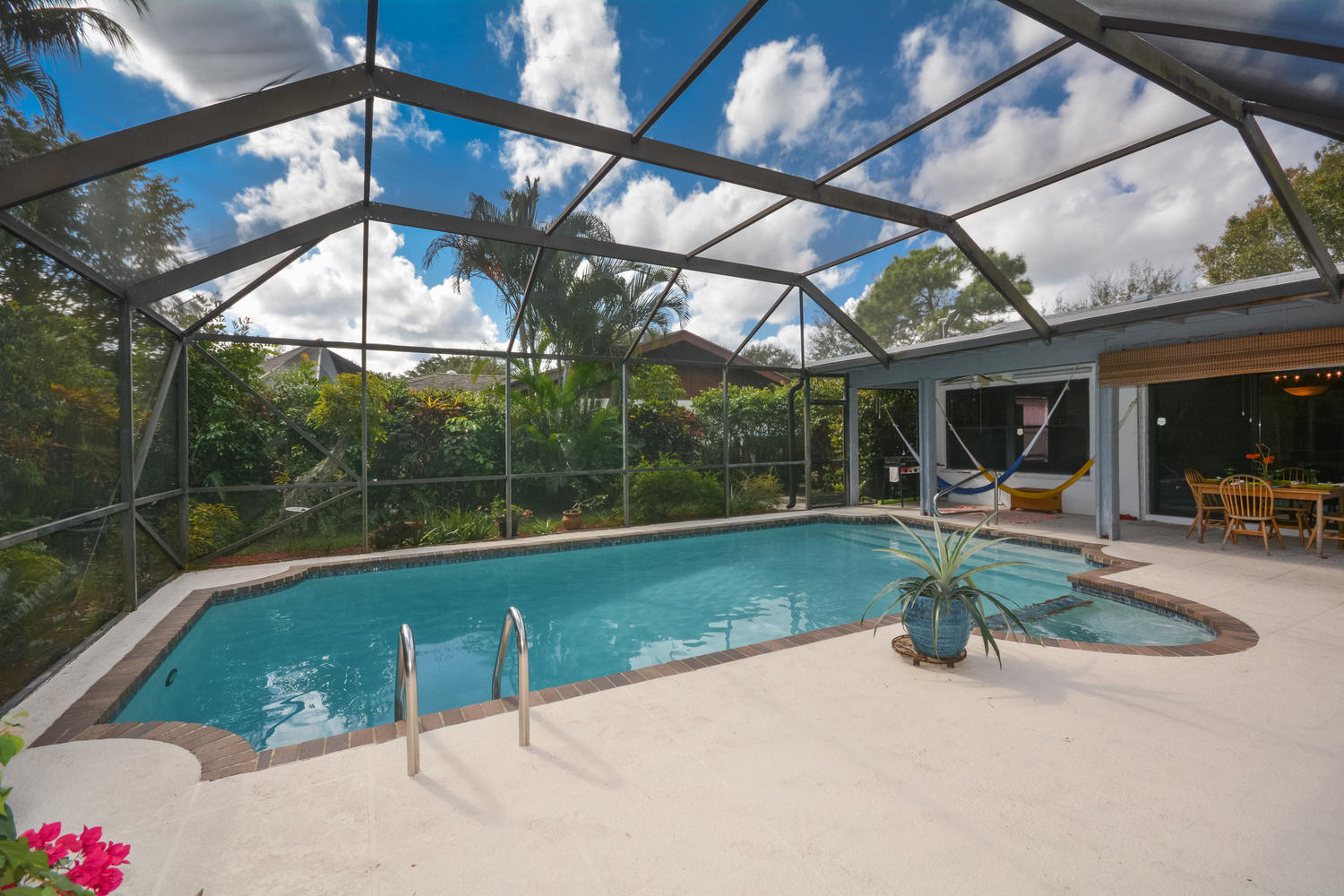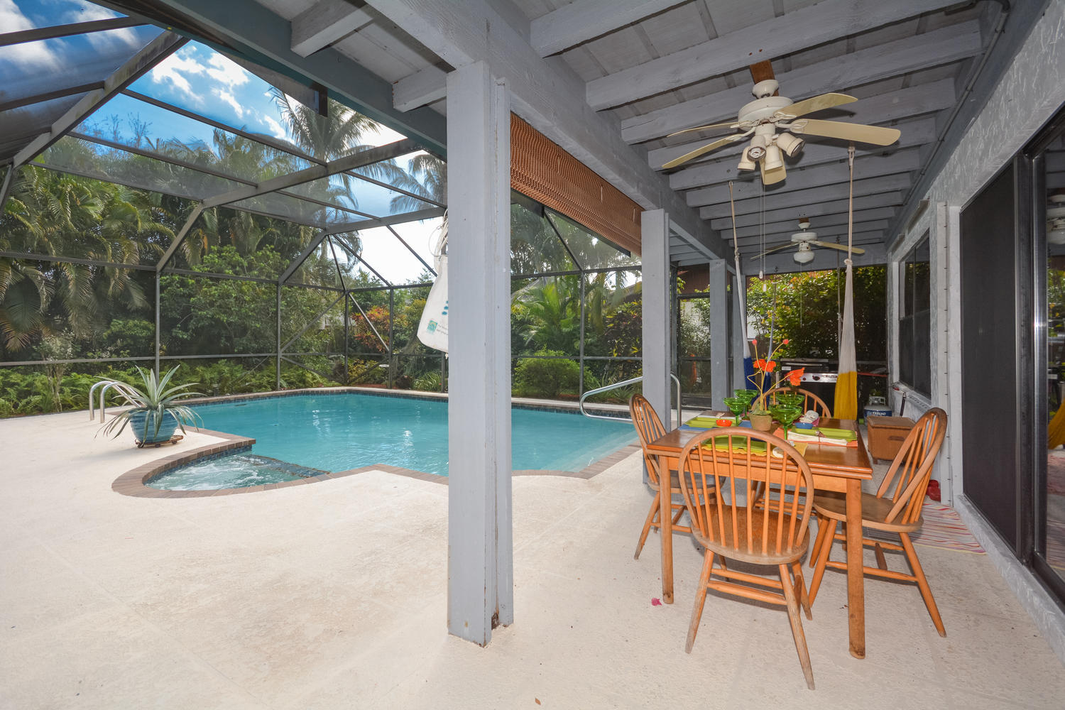 NICELY APPOINTED 3 BEDROOM, 2.5 BATH HOME ON LARGE CORNER LOT. ROOF REPLACED 2013, A/C 2011. SPLIT FLOOR PLAN WITH UPGRADED KITCHEN INCLUDING WOOD CABINETS, CENTER ISLAND, GRANITE COUNTERTOPS AND STAINLESS APPLIANCES. NEWER TILE FLOORS SET ON DIAGONAL THROUGHOUT HOUSE, NO CARPET. UPDATED MASTER BATH. PANEL HURRICANE SHUTTERS AND 2013 GARAGE DOOR. SOLAR POWERED HOT WATER HEATER. BEAUTIFUL SCREENED-IN POOL AREA WITH EXPANSIVE COVERED PATIO PERFECT FOR FLORIDA LIVING. LARGE CORNER LOT WITH MATURE LANDSCAPING AND EXOTIC PLANTS AND FLOWERS AND YOUR OWN VEGETABLE GARDEN. PERFECT CENTRAL BOCA LOCATION WITH EXCELLENT SCHOOLS NEARBY AND FINE SHOPPING AND DINING.