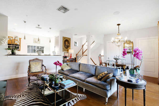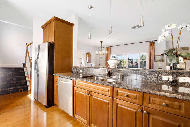 Gorgeous townhome w/double garage on 3 floors. Two bedrooms upstairs, each with ensuite bath. One bedroom downstairs w/ensuite bath. Powder room for guests. Upstairs laundry. Fabulous designer concept main floor w/ open kitchen/living area. 42'' wood cabinets in the kitchen, w/quality stainless appliances & vent hood. Wood floors. Volume ceilings. House & Garden bathrooms w/granite counters & detailed wood vanities. Jacuzzi tub & separate shower in master bath. Gorgeous view of the golf course. There are 12 townhomes configured in a U-shape w/a Mediterranean flavor. #6 is at the back of the U, directly on the golf course. Patio on ground floor. Balcony off living room. Very bright and airy home. All windows & sliders are hurricane glass. Tons of storage...(see supplement for full remarks).