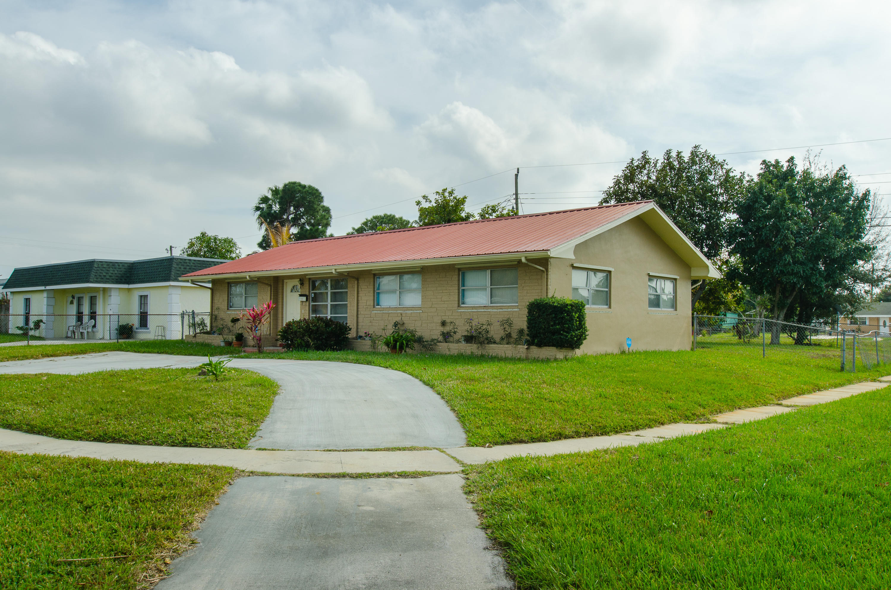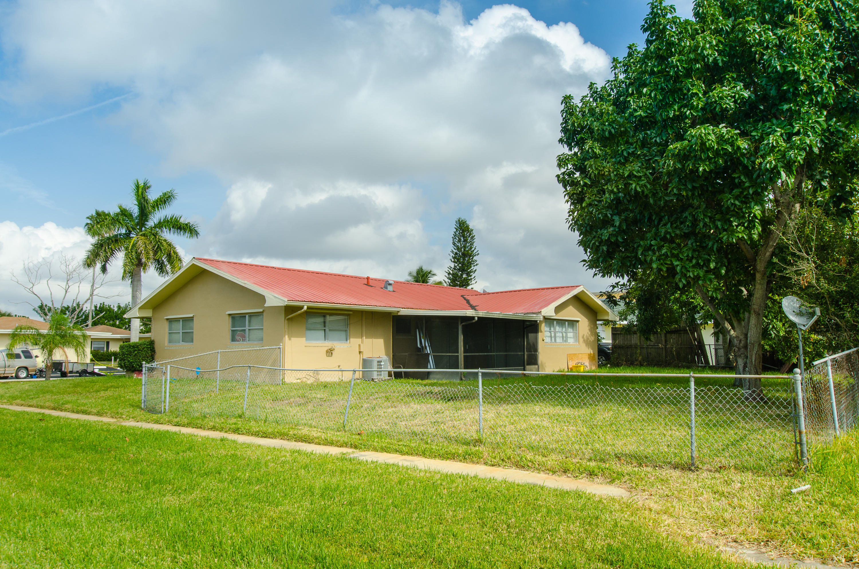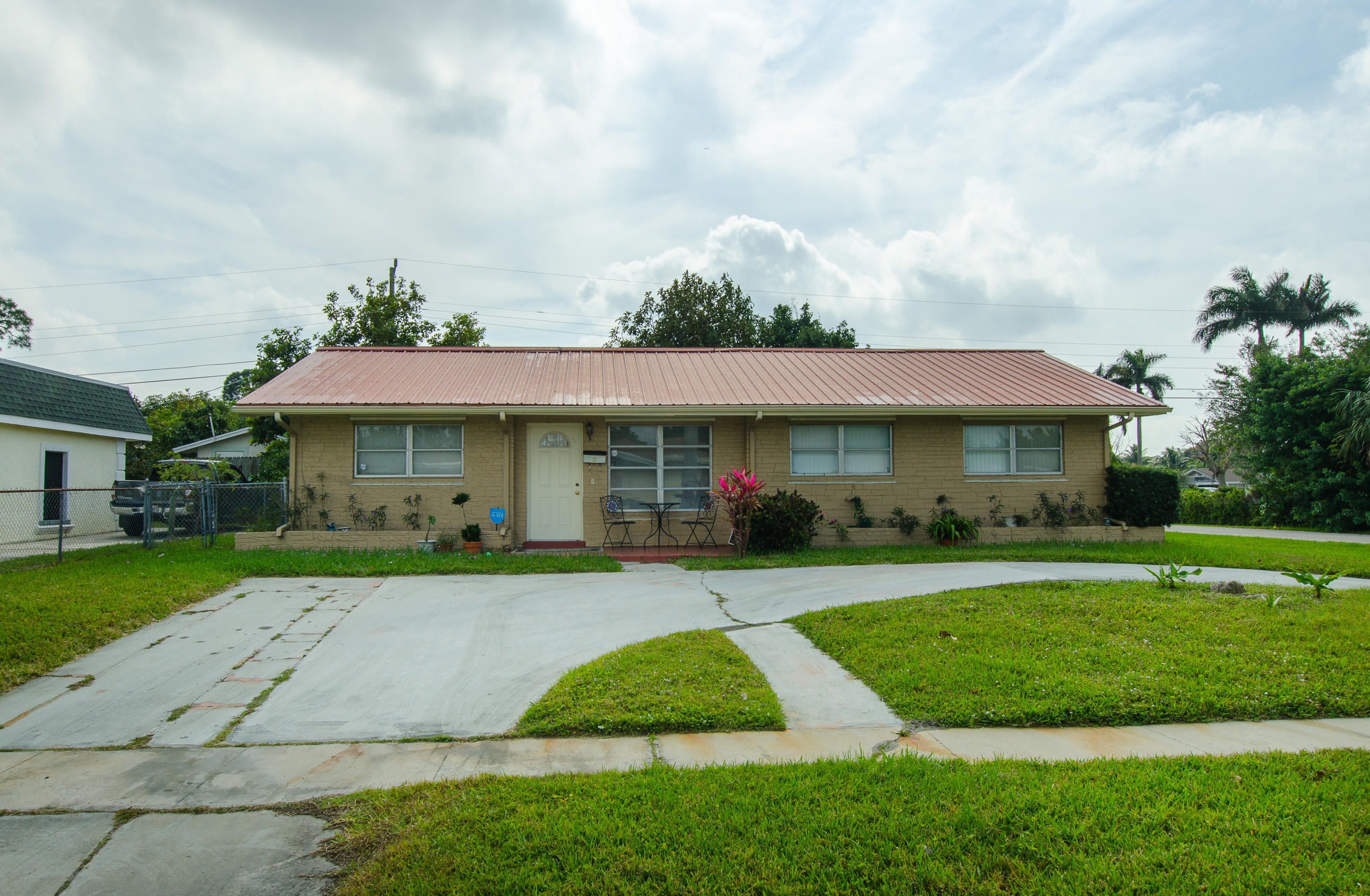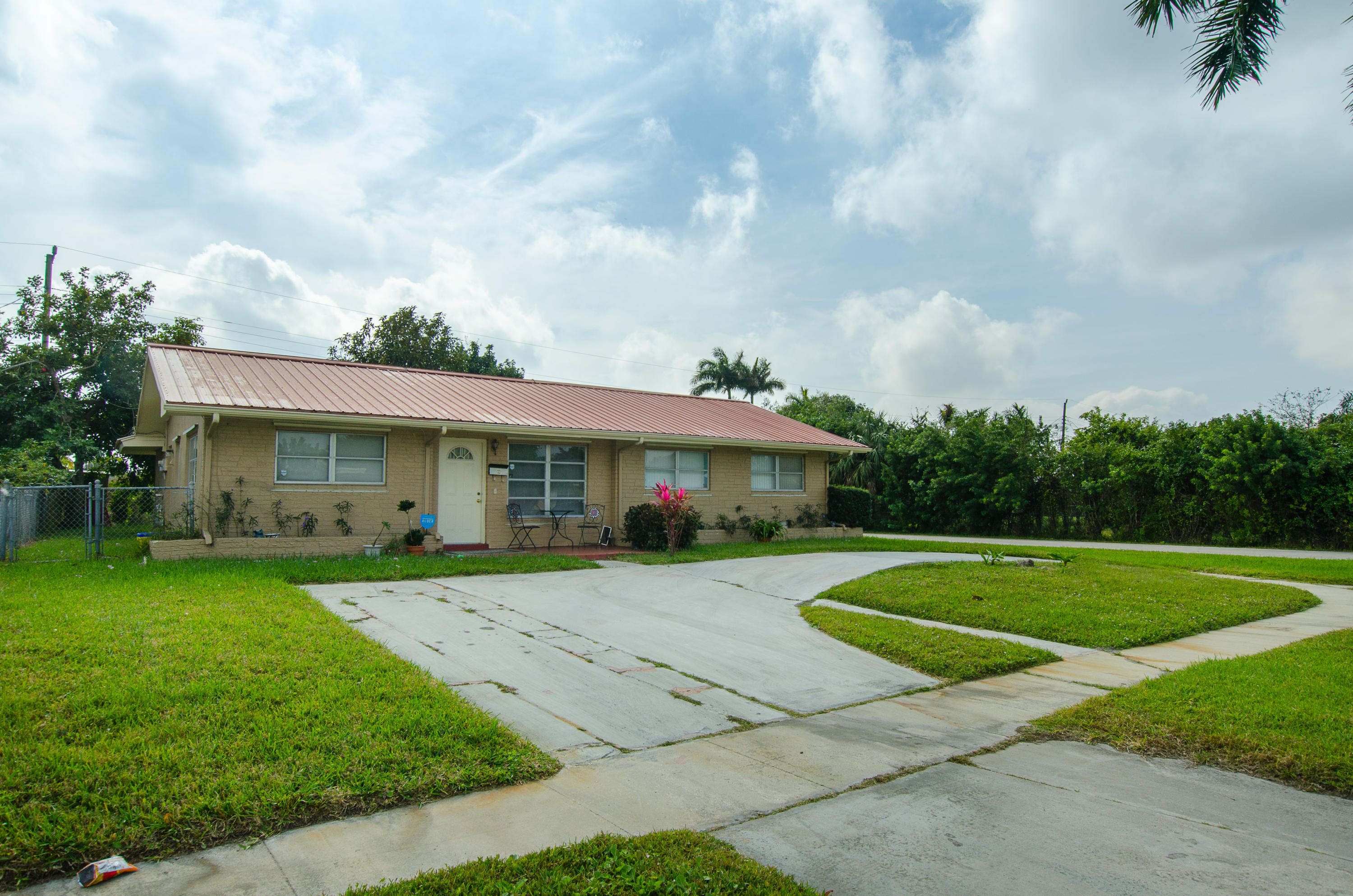 Take advantage of this rare opportunity on a 4 bed 2 bath Single Family home in the heart of West Palm Beach! The home features lots of space within a really great floor plan, tons of natural light, a newer metal roof, updated bathrooms, tile throughout most of the property, separate laundry room with washer/dryer, private screened back patio, walk-in closet in the master, a fully fenced back yard, and a front half moon driveway.The home also includes shutters for all windows. The property is a corner unit in a very peaceful neighborhood, and has great highway access since it's near I-95, the turnpike as well as great shopping, restaurants, entertainment and the airport.