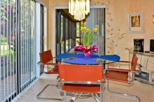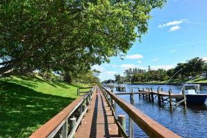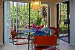 SINGLE level Townhouse is highly desirable Waterside Neighborhood. Close to Hillsboro Canal and beautiful 18th Street in Boca Raton. Very clean and well maintained home, close to Tennis Courts, Club House and Community Pool in Gated Ocean Access Waterfront Community. Light and open home and quiet backs onto Tropical Gardens where peace and quiet await....Upgraded Kitchen with nook. Open Living area with 20'' tile throughout affords views of gardens and opens to Florida Room. Master Bedroom has extended Sitting area/office. Good sized bedrooms, Third used as office offers private patio. Come and see for yourself. Chandeliers in kitchen and dining room do not convey