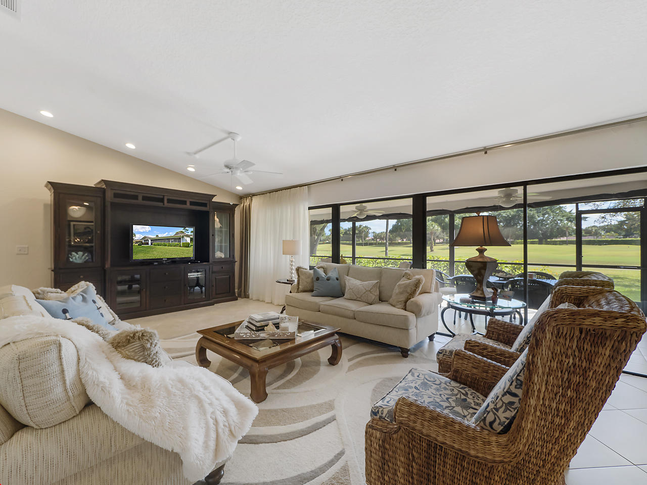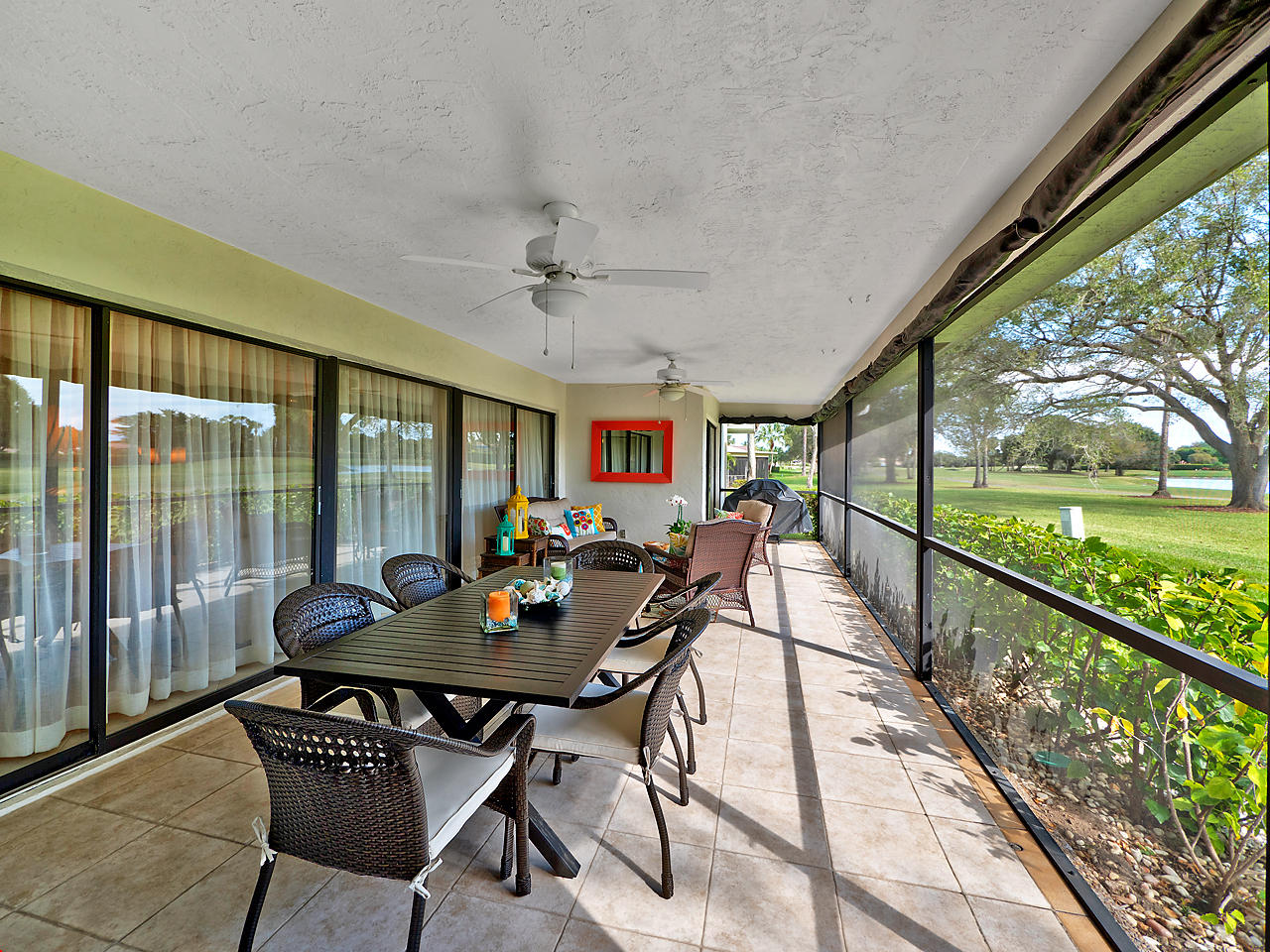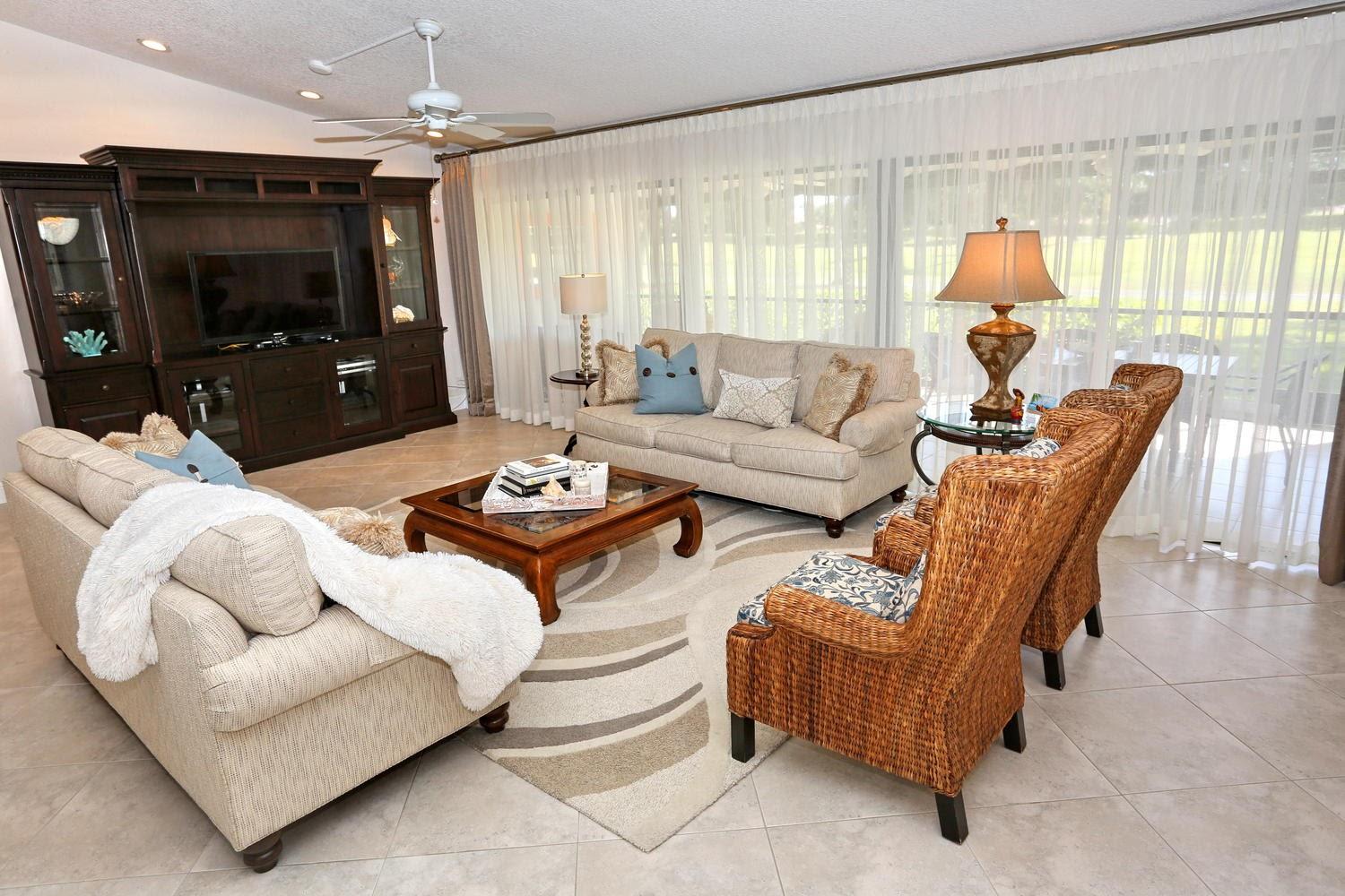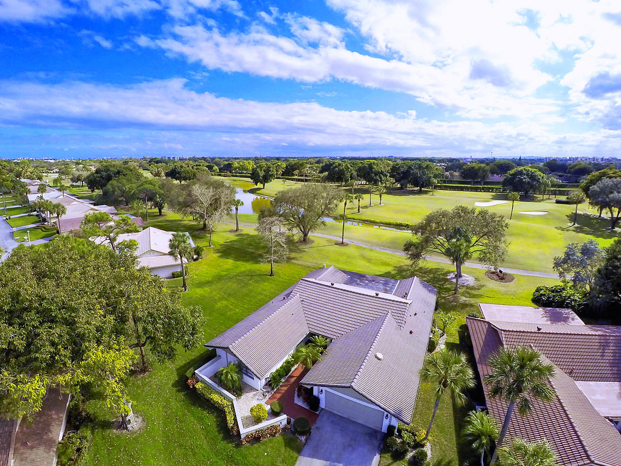 Enjoy magnificent golf & lake views from almost every room in this light & bright, 3 Bedroom 2.5 bath corner home. Double door entry to beautiful foyer, opening up to the enormous living room w/sweeping panoramic south facing views w/dramatic vaulted ceilings. Updated kitchen w/SS appliances & granite counters,large dining area & 2 pantries. Featuring 2 master suites w/updated, high end, spa like bathrooms. Oversize walk in closets. Updated half bath. Spacious bedrooms. Huge screened patio w/great views! Great place to entertain. Home is directly backing up to the golf course. Over sized 2 car garage. Close to great shopping, houses of worship, parks & the YMCA. Community is well kept & offers 2 community pools, lawn care & basic cable. Great schools! All ages welcomed!