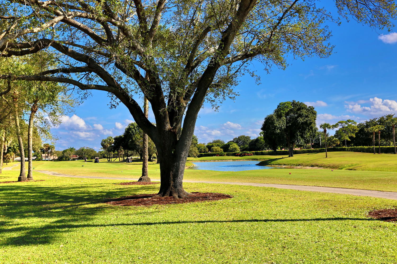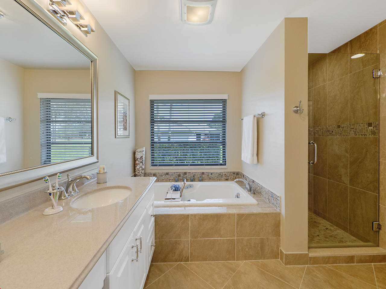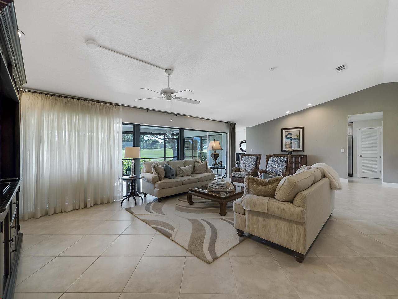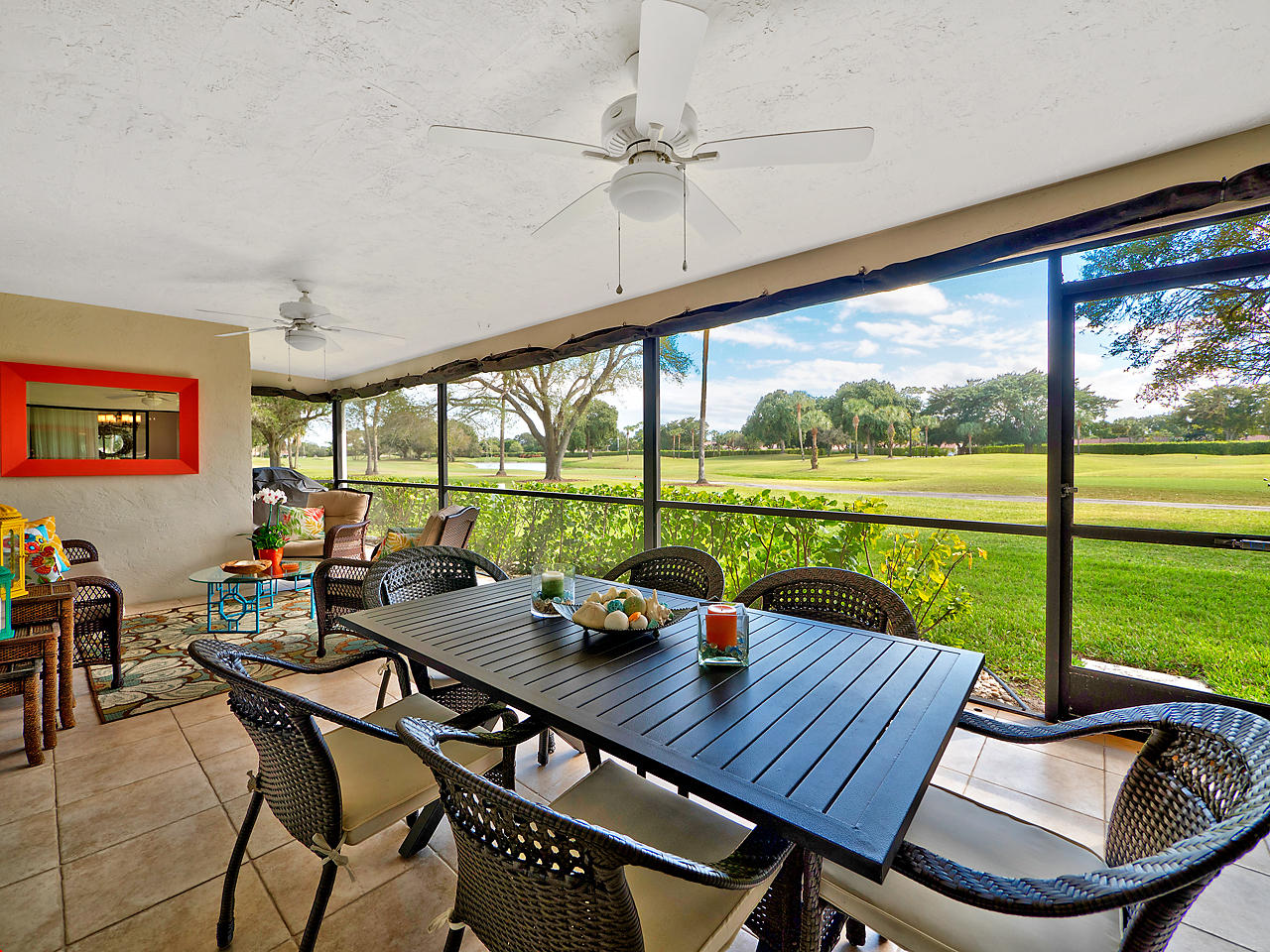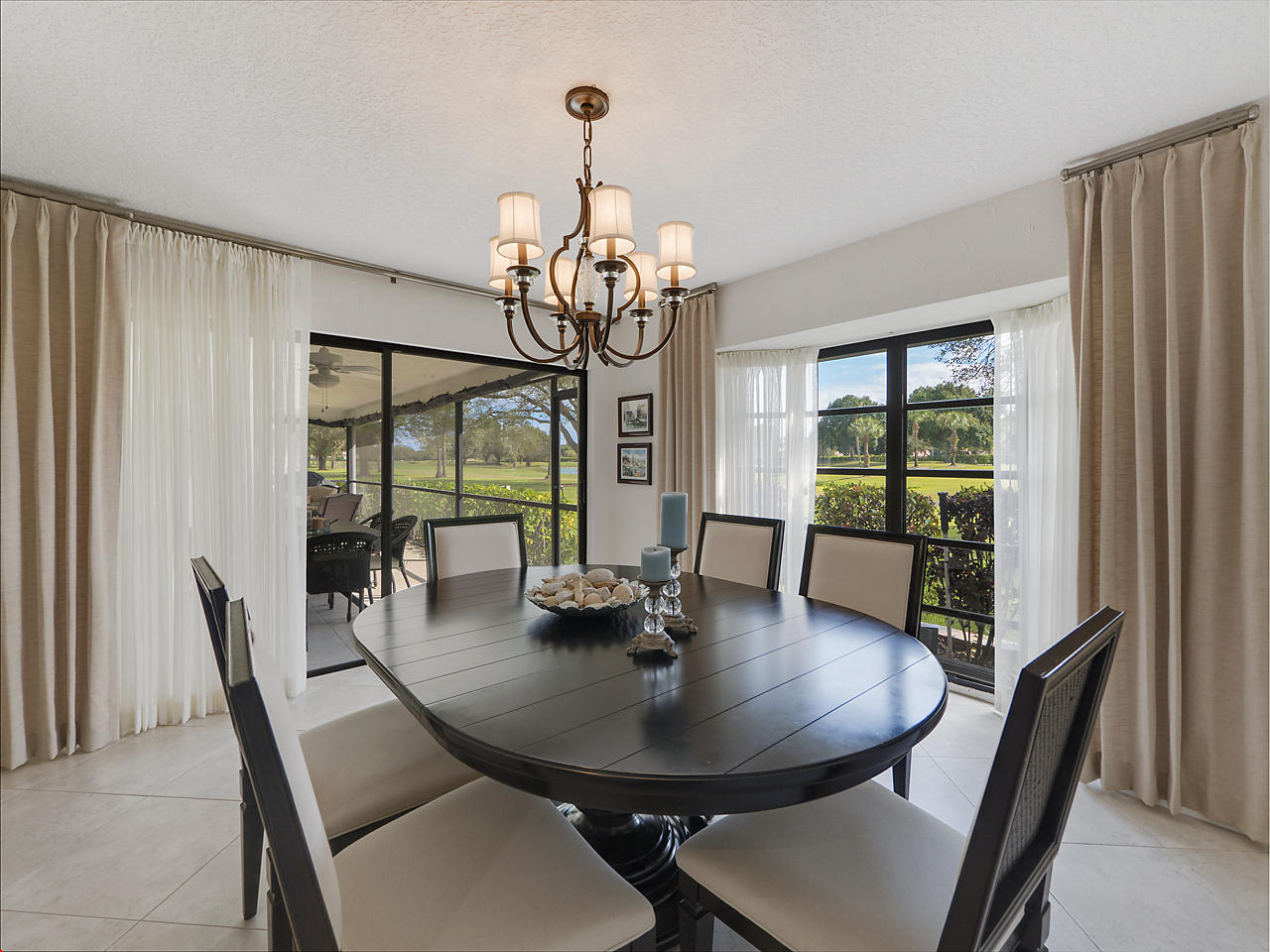 Enjoy magnificent golf & lake views from almost every room in this light & bright, 3 Bedroom 2.5 bath corner home. Double door entry to beautiful foyer, opening up to the enormous living room w/sweeping panoramic south facing views w/dramatic vaulted ceilings. Updated kitchen w/SS appliances & granite counters,large dining area & 2 pantries. Featuring 2 master suites w/updated, high end, spa like bathrooms. Oversize walk in closets. Updated half bath. Spacious bedrooms. Huge screened patio w/great views! Great place to entertain. Home is directly backing up to the golf course. Over sized 2 car garage. Close to great shopping, houses of worship, parks & the YMCA. Community is well kept & offers 2 community pools, lawn care & basic cable. Great schools! All ages welcomed!
