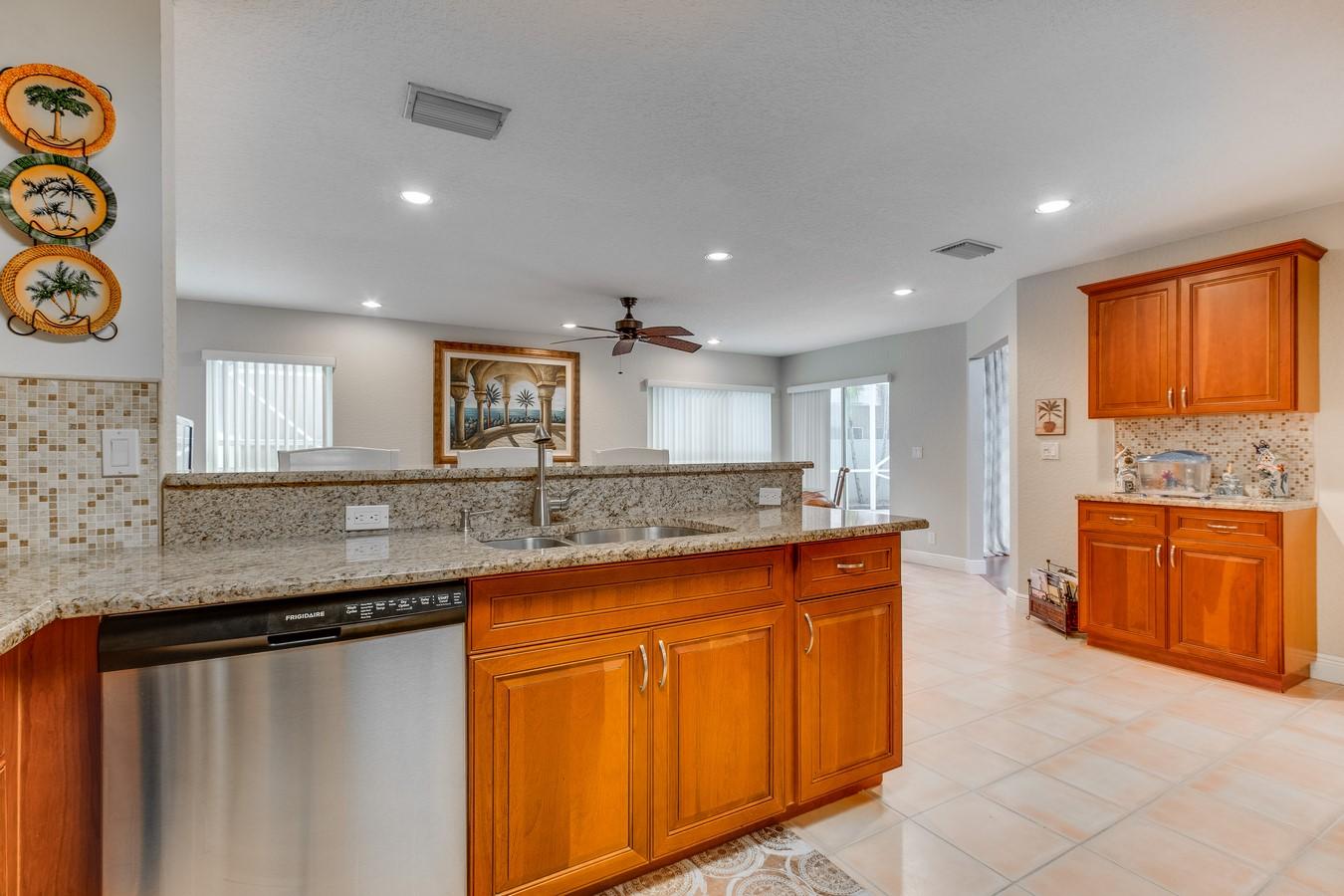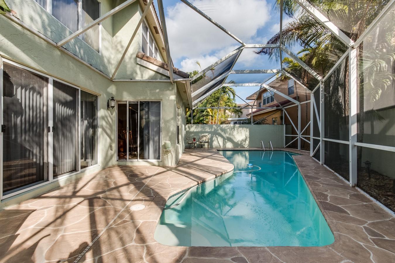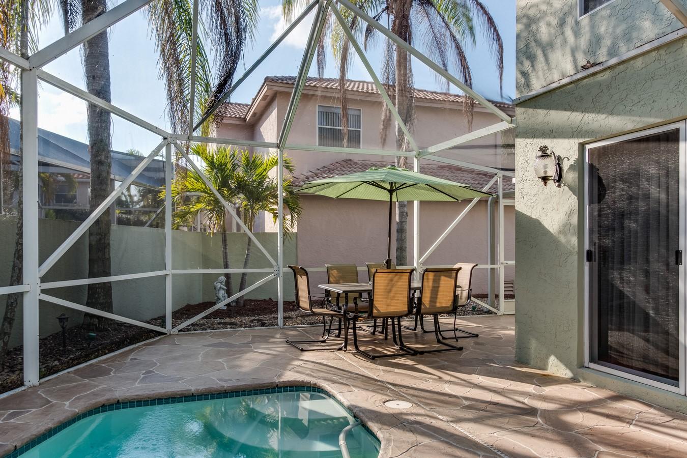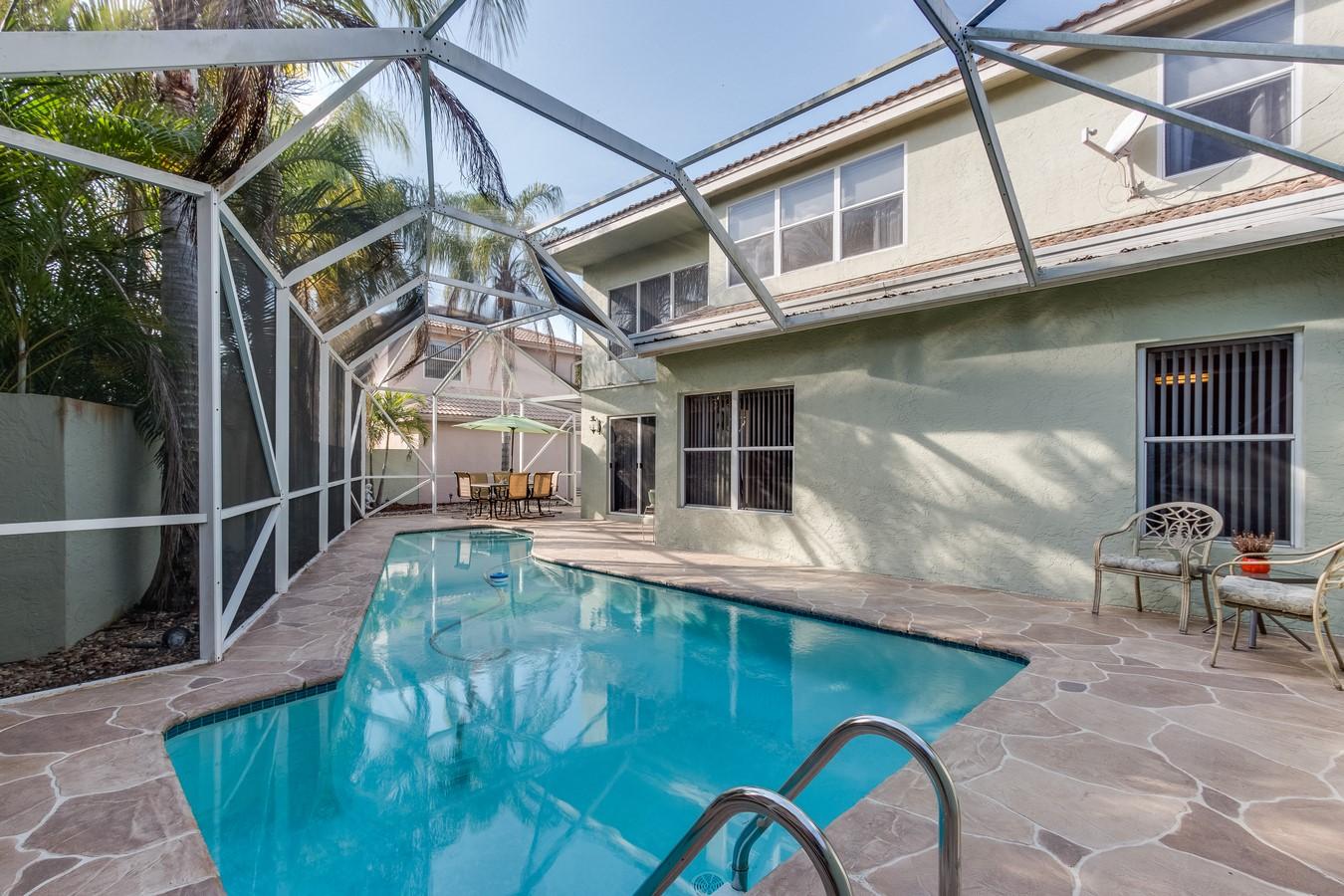 Beautiful 4 bedroom, 3 bathroom, 2 car garage home with screened in pool. Remodeled kitchen with granite counters, tiled backsplash, stainless appliances, snack bar and family dining area. Large master retreat with coffered ceiling, his and hers closets, and elegantly remodeled master bath. The two additional bedrooms upstairs are joined by a Jack & Jill bath. One bedroom downstairs with an additional full bath. Mission Bay is located next to the Chris Everett Tennis Academy. Mission Bay has undergone a major transformation throughout its property with updates to the clubhouse, fitness center and pool area. This home has been lovingly maintained and boasts new Interior paint, new AC, and new dishwasher all within the last year. Don't miss out on one of Boca's best kept secrets.