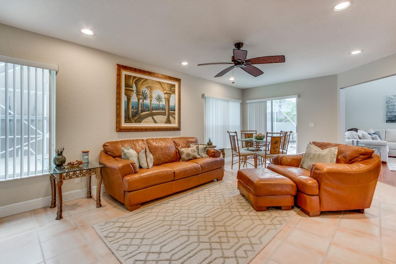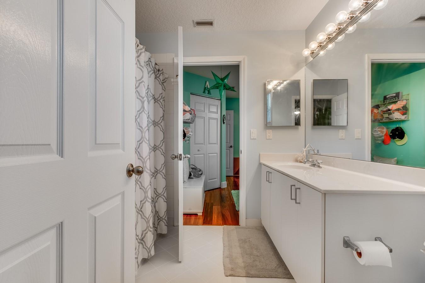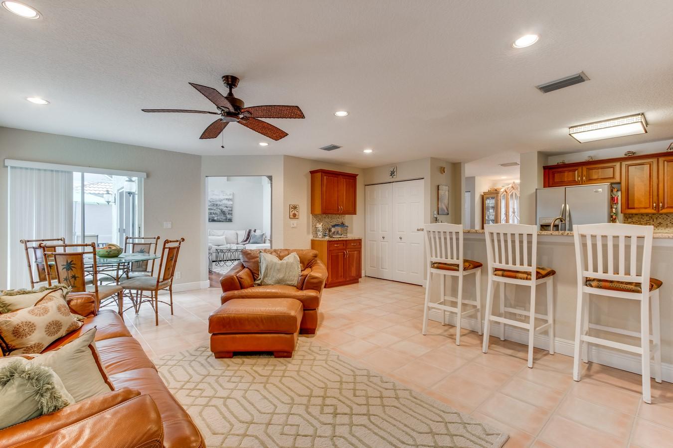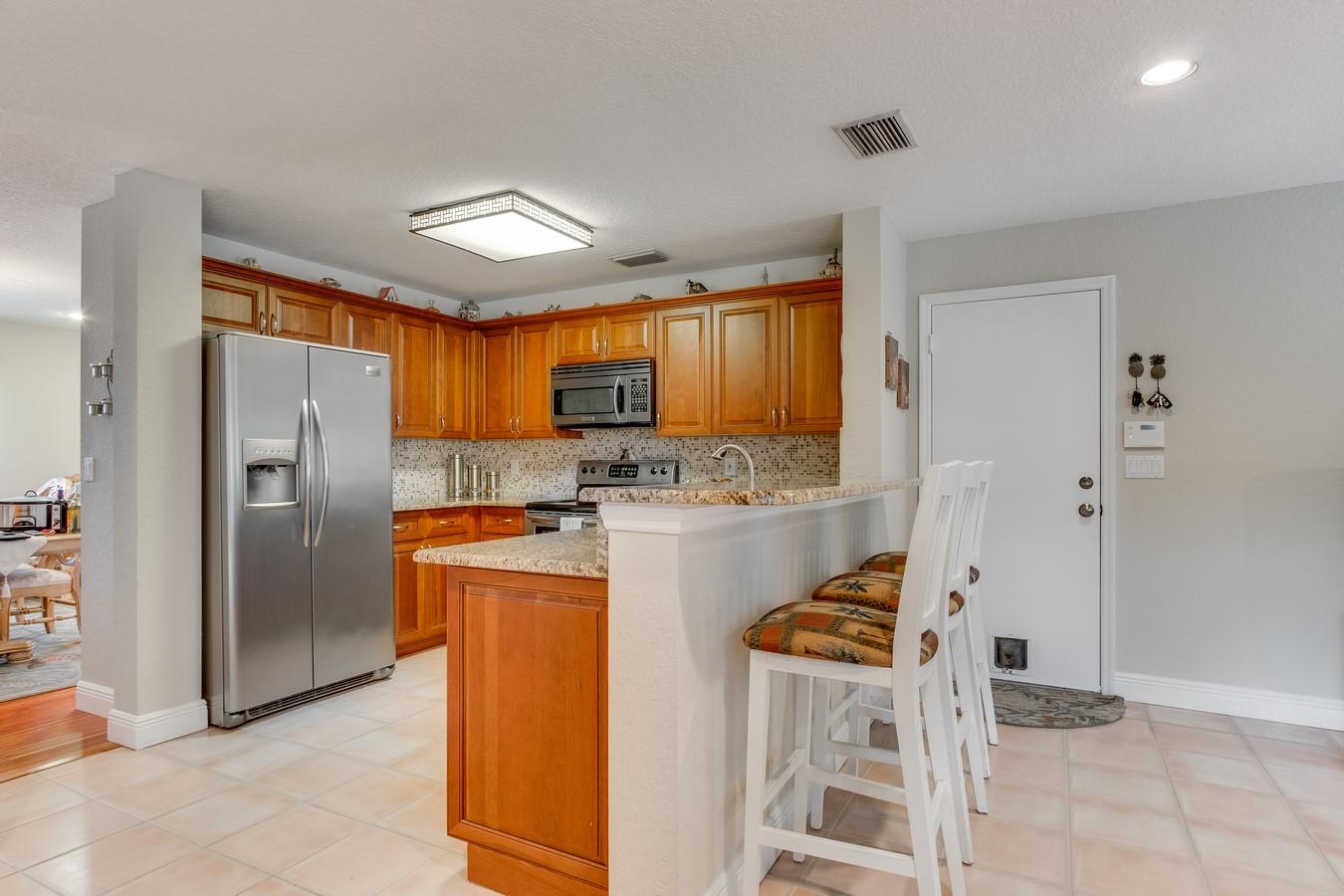 Beautiful 4 bedroom, 3 bathroom, 2 car garage home with screened in pool. Remodeled kitchen with granite counters, tiled backsplash, stainless appliances, snack bar and family dining area. Large master retreat with coffered ceiling, his and hers closets, and elegantly remodeled master bath. The two additional bedrooms upstairs are joined by a Jack & Jill bath. One bedroom downstairs with an additional full bath. Mission Bay is located next to the Chris Everett Tennis Academy. Mission Bay has undergone a major transformation throughout its property with updates to the clubhouse, fitness center and pool area. This home has been lovingly maintained and boasts new Interior paint, new AC, and new dishwasher all within the last year. Don't miss out on one of Boca's best kept secrets.