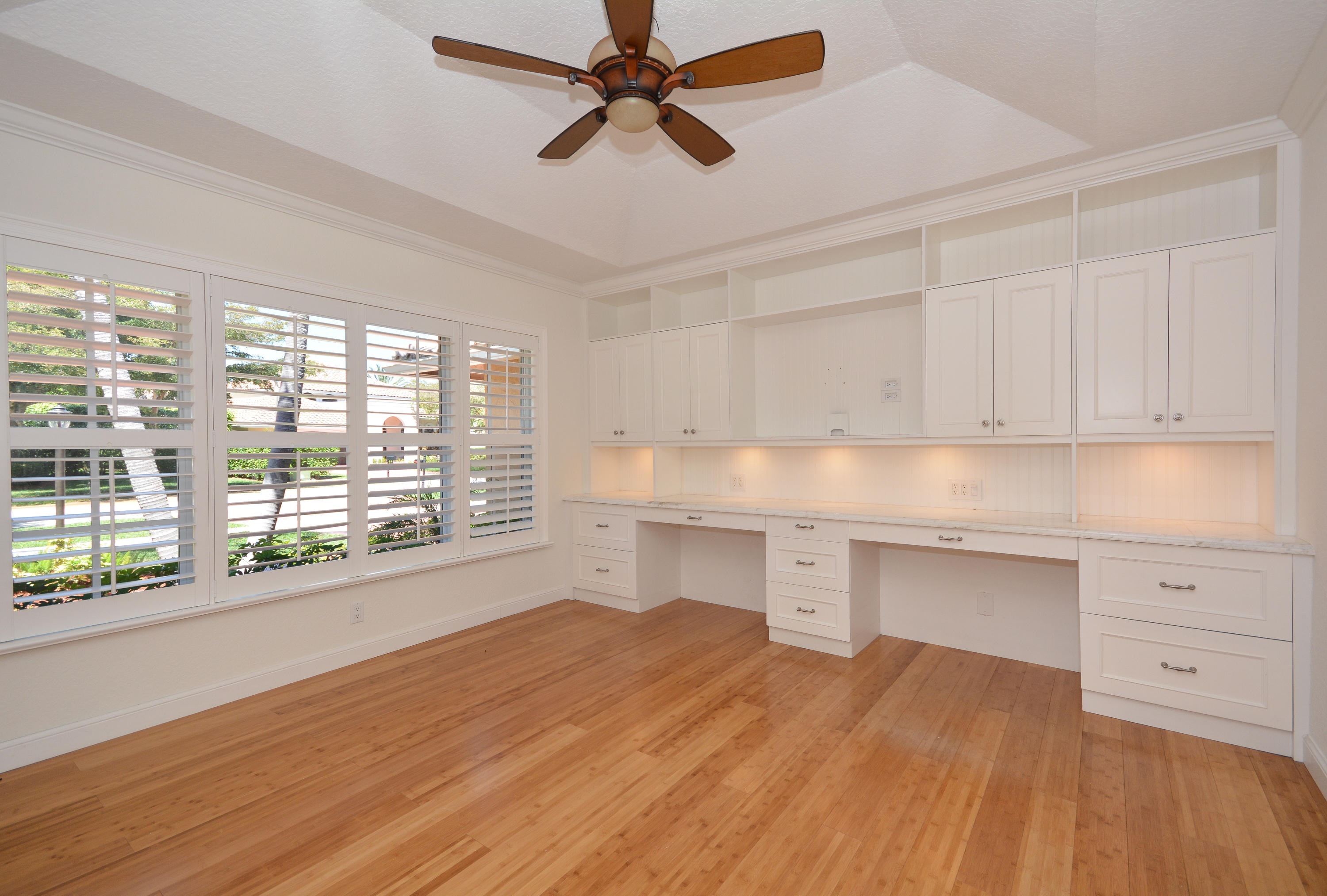 PERFECT layout...PERFECT yard. Welcome to this 3 way split plan: 4 bedrooms, 3 1/2 bathrooms. One bedroom is located in rear of home with adjacent oversized cabana bath. The office features built-ins with 2 desks and marble top. The open kitchen with large eating area overlooks the inviting family room. Living Room with working fireplace and tasteful built-ins. Master bedroom is privately located. Insuring the integrity of your privacy, the rear of home is on oversized green space. Heated pool with waterfall. Easy to maintain bamboo wood flooring in main living areas. Impact glass except two doors. Finished flooring and cabinetry in garage. This home offers maximum enjoyment! Freshly painted and new high quality carpet in bedrooms just completed.