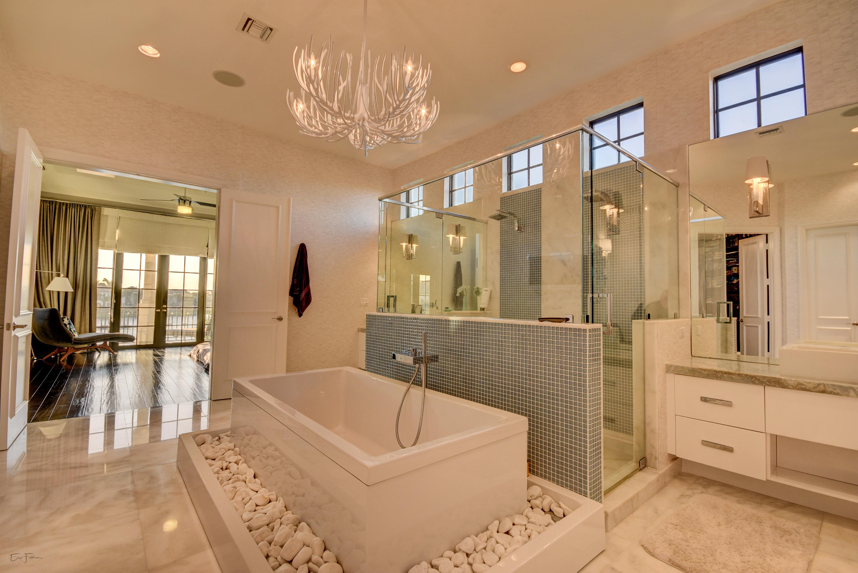 There are not enough words to describe this exceptional ''Custom Contemporary Meets Zen'' estate...Every inch of the outside and inside is true custom clean line perfection, w/ imported unique top of the line renown designer appointments. With more than 7,000 living sf and 6 bedrooms plus outfitted library, loft and bonus/media room, this home is like no other. Flawless white limestone and hardwood flooring, incredible bar, beyond gourmet custom kitchen, 2 bedrooms and office downstairs, and huge luxurious master bedroom with large sitting area overlooking exceptional wide lake lot with the best sunsets, true resort style pool and marble patio, and large play yard. With more than $half million in true designer appointments, this one of a kind home is truly better than a model! Addendum:
