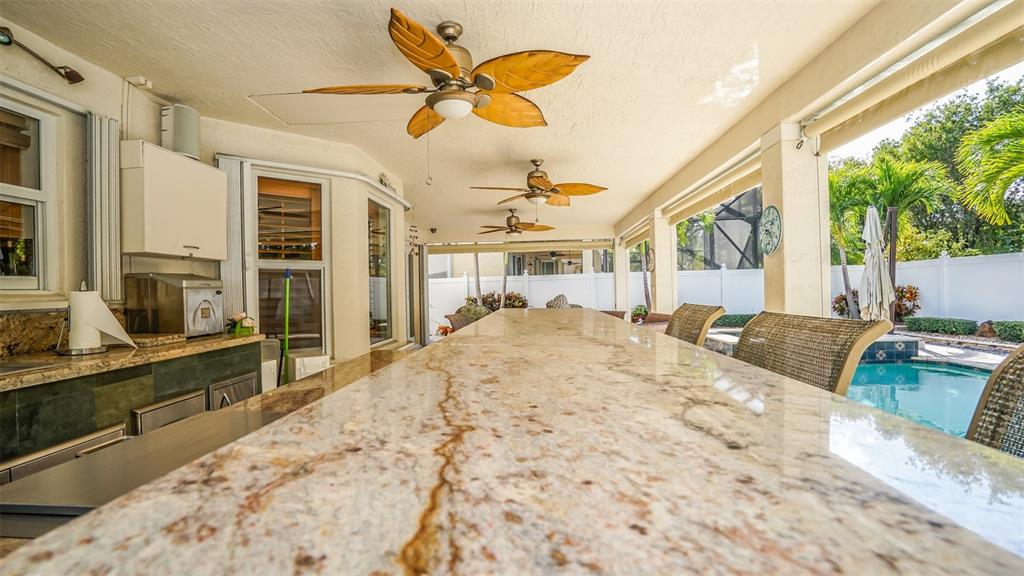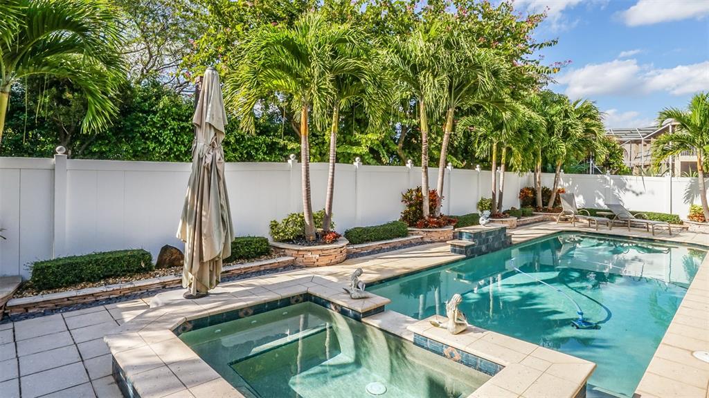 Best Value in Silver Shores! Over $100,000 in upgrades in backyard alone, incl outdoor kitchen, salt chlorinated, heated pool and spa, 15 X 30 covered patio w/ awnings & shades (patio furniture incl.)!! $22,000 spent in landscaping. Kitchen w/ 42” cabinets, granite, 2 yr old top of the line Kitchen Aid appliances. Impact glass, accordion, & panel shutters. Two newer A/C's, newer water heater, water softener, water filtration system, alarm w/ cameras & dvd recorder, intercom, & plantation shutters.