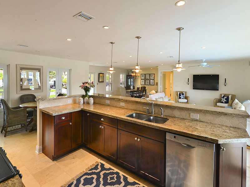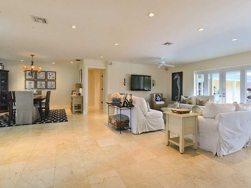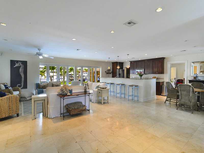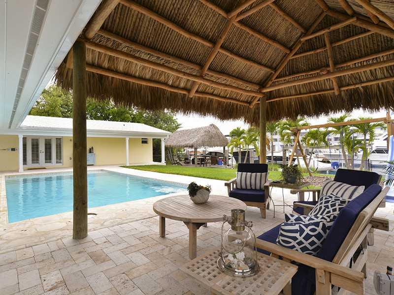 Rare opportunity to own a unique luxury waterfront costal style home w/ 91' deep direct access water frontage w/no fixed bridges. Appx 3K sqf w/ open airy floor plan + 750 sqf covered outdoor living space. Master suite w/ French doors to pool, his/her's w alk in closets. Completely remodeled in 2009: new roof, HVAC, heated pool, impact windows/doors, marble/rectified porcelain floors, granite countertops, stainless appliances. Enormous yard w/2 tiki huts, 70' dock, 27K lb lift