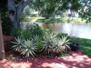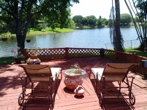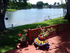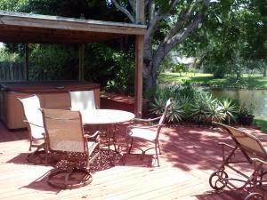 Breathtaking lake views from this 3/2 home plus den. The outdoor space is simply gorgeous. Water views draw the eye from the moment you enter the front door. Enjoy outdoor spa tub under open sided cabana. Comfortable living space includes double sided stone fireplace, vaulted living room ceilings, stone tile floors on diagonal throughout living areas, solar cooled glass sliders. Roof replaced in 2005, A/C August 2009, water heater May 2013.