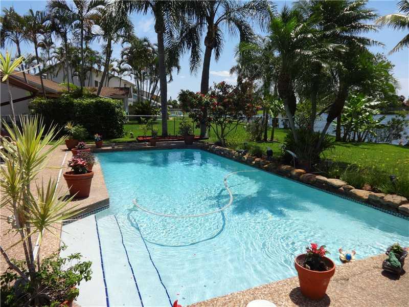 Enjoy cool breezes off the lake in this remodeled kitchen home that is very clean and meticulously maintained. Four full bedrooms one with a corner window and the master with sliders to the pool. Roman tub in the master bedroom. Pool views from the dining room, kitchen, family room and the master. Beautifully appointed kitchen with cabinets to the ceiling for loads of storage. Full granite backsplash. Breezy waterway with luscious lychee fruit tree in big yard. Refrigerator in garage excluded.