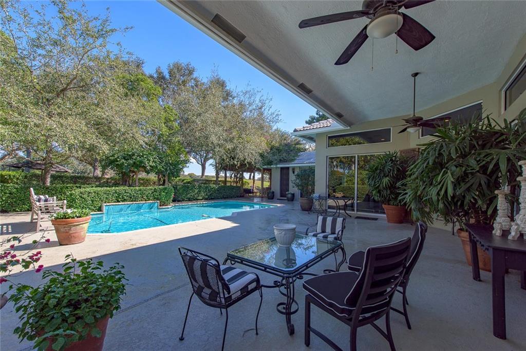 Exceptional 5/4 plus office home in Eagle Trace. Home offers polished travertine floors, updated kitchen w/ Sub Zero fridge, SS appls w/ double ovens, Bosch dishwasher, granite counter, wood cabinets and center island. Home has custom shades, built ins in closet, solid doors and central vac. Remodeled Master bath has rain shower head and Jacuzzi tub. Guest Bath Remodeled, newer 16 Seer A/C units and front loader washer and dryer. Sanctuary backyard on golf course with recently refinished salt water pool.
